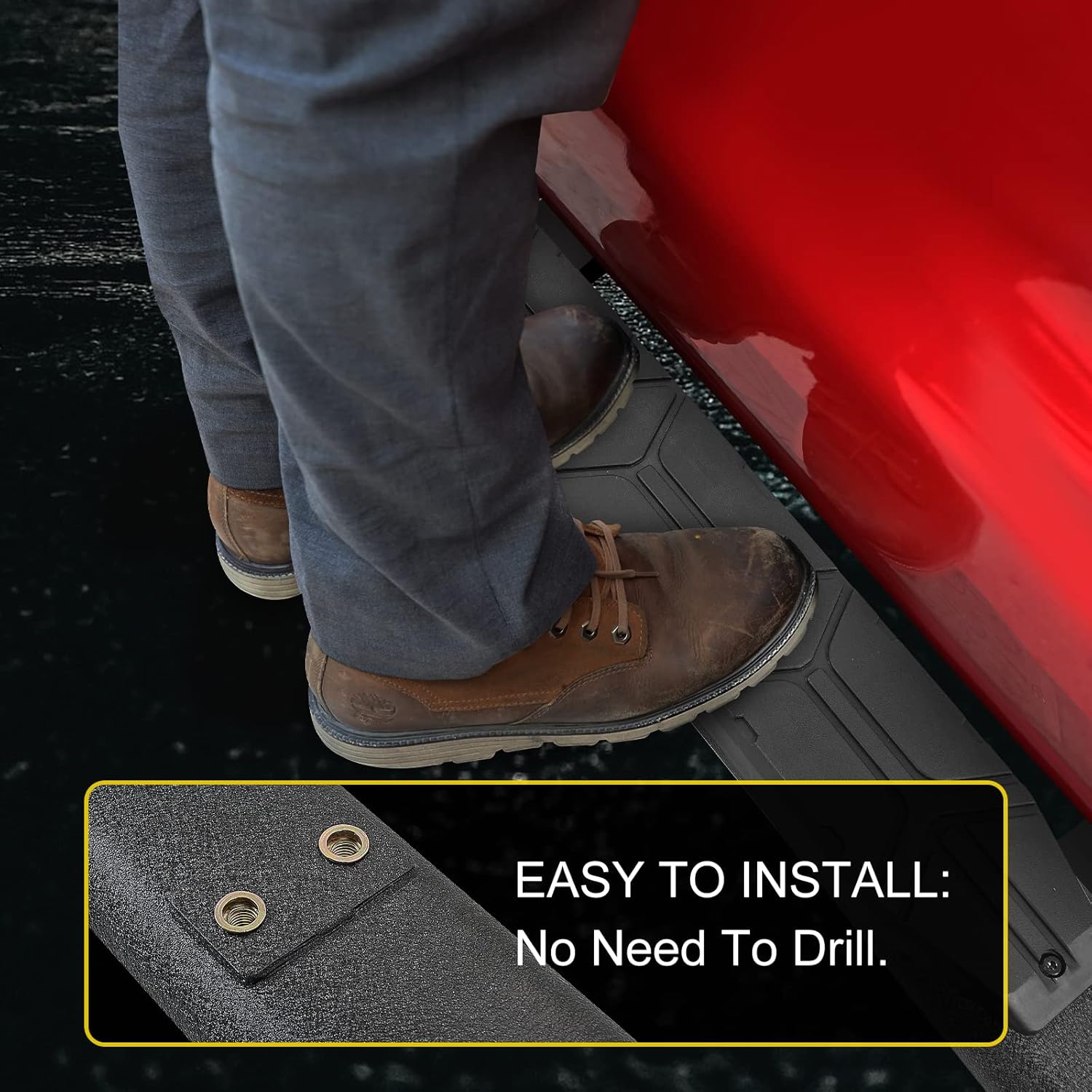 - MATERIAL: The Step Bars Made with Heavy-Duty Carbon Steel. The Surface of The Step Bar Is Rust-proof Dual-stage Textured Black Powder. This Is More Rust-proof and Sturdier Than Ordinarily Crafted Steps. Maximum Load Capacity 450LBS.