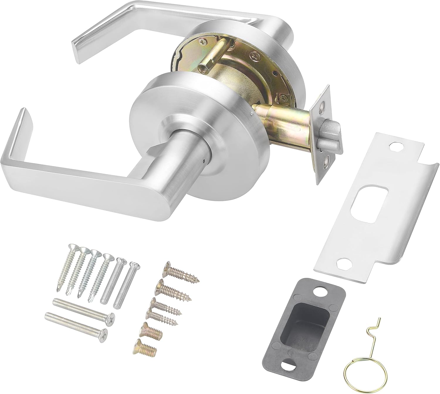 - COLOR & SIZING: Our commercial door locks are offered in Satin chrome and aluminum finish (26D finish). Designed for 1-3/8" to 1-3/4" (35mm to 44mm) doors, but they fit 1-1/2" to 2" thick doors and come standard with a 2-3/4" backset. These are non-handed commercial door levers, so they are suitable for either right- or left-handed doors. (optionial 2-3/8" backsets are available)