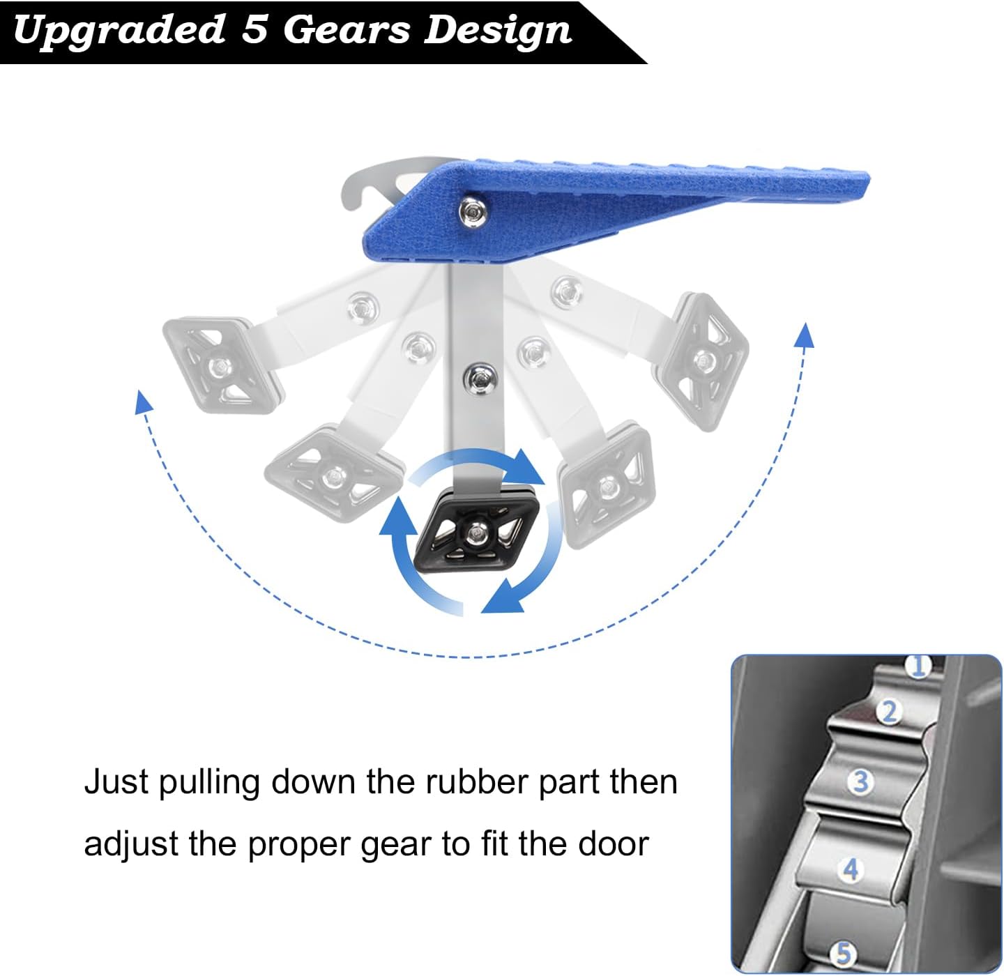 - Upgraded 5 Gears and Easy Installation: Upgraded 5 gears design provides 5 options for adjusting the leveling angle to ensure stability. Quickly access the roof in a few simple steps by hooking the latch, then pulling down the rubber part and adjusting the proper gear to fit the door
