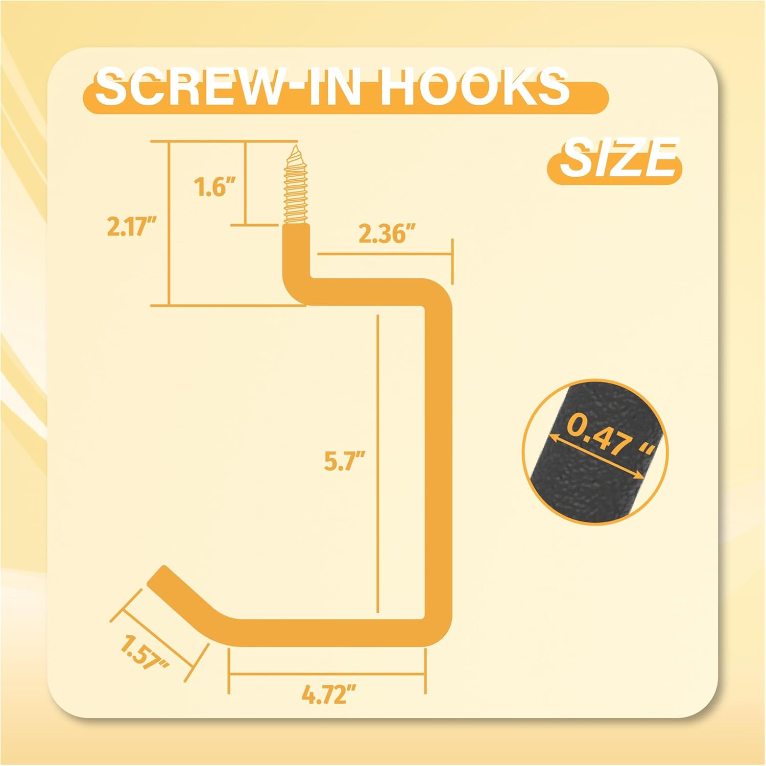 - EFFORTLESS INSTALLATION - Thanks to their sharp threaded heads, our garage utility hooks can be effortlessly screwed into wooden walls without the need for guide holes. For drywall installation, proper anchors and pre-drilled holes are recommended for optimal stability.