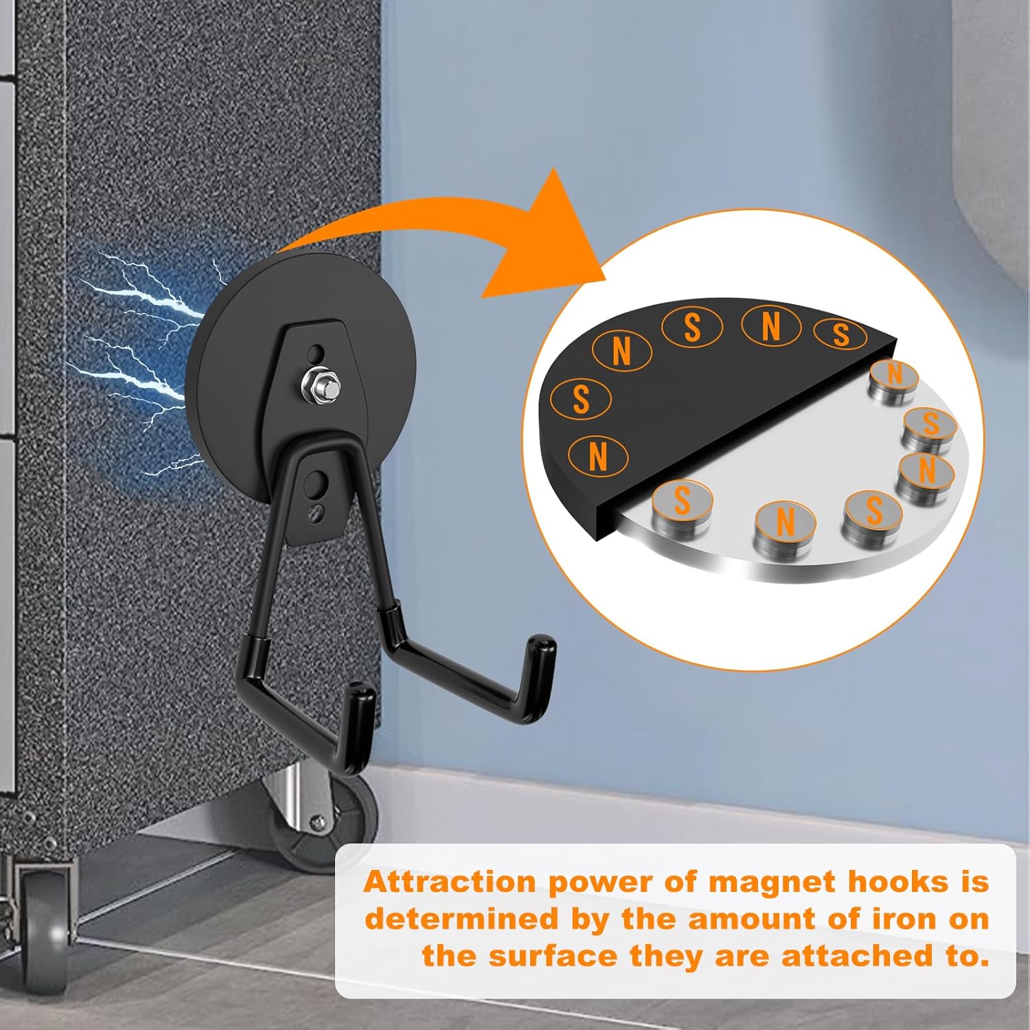 - Meet your daily needs: The magnetic garage hooks are perfect for storing and hanging power tools, drills, lawnmowers, garden tools, shovels, brooms, spades, ropes, hoses, gym bags, and mops