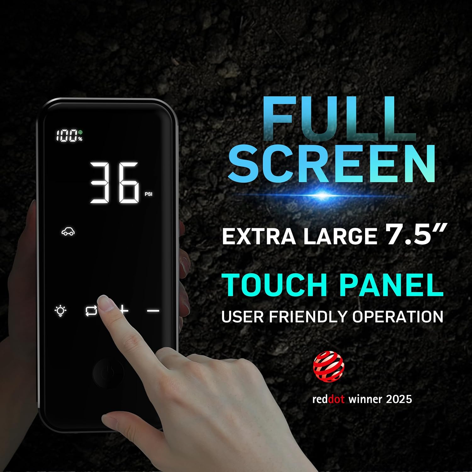 - Full Screen Touch Panel: Humanized interface with full screen design looks just so cool. Enjoy its sleek touch in every use. Touch screen light makes this car tire inflator portable air compressor really practical to use even in the dark