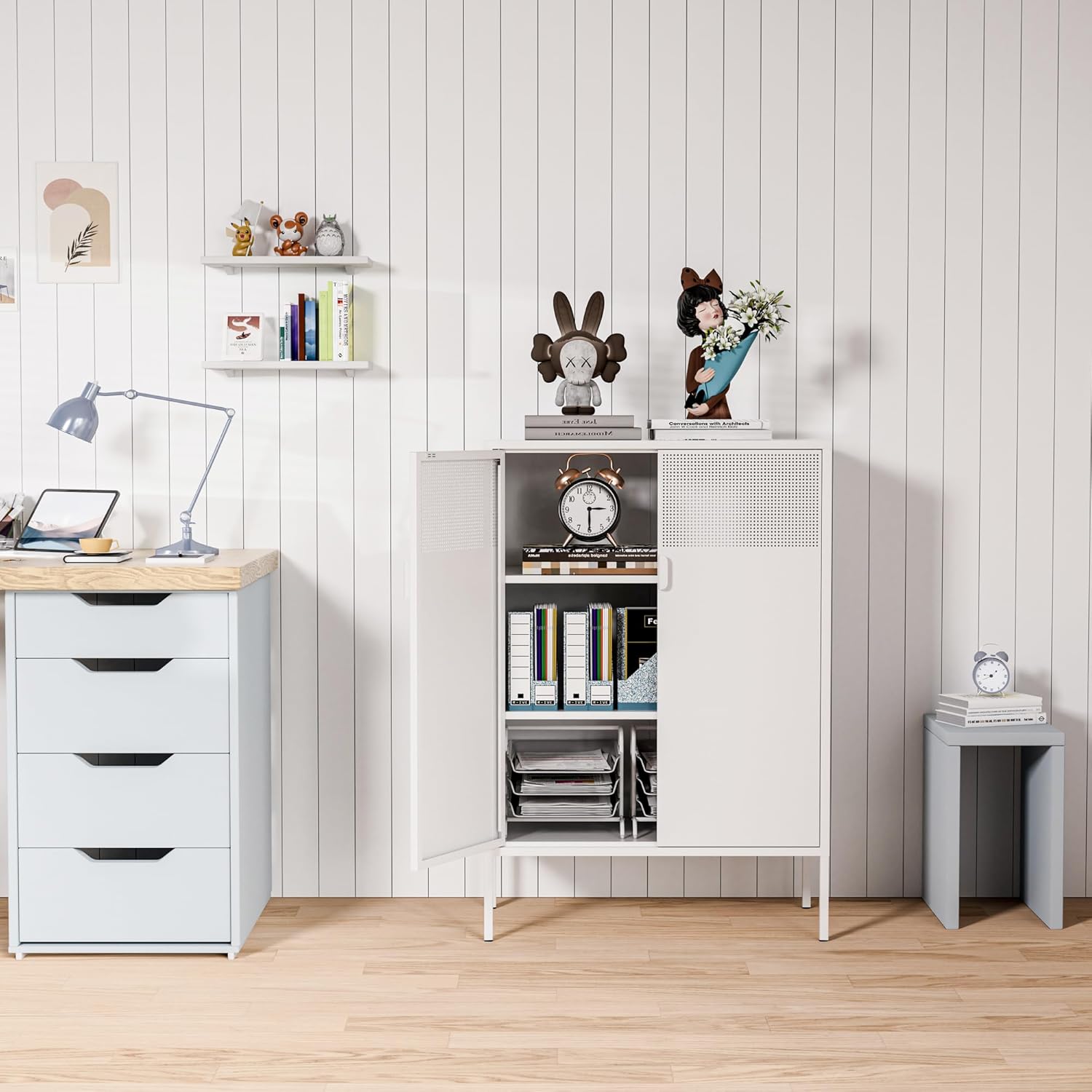 - Steel Construction: Crafted from durable alloy steel with a powder-coated white finish, this metal storage cabinet offers long-lasting durability for daily use at home or in the office.