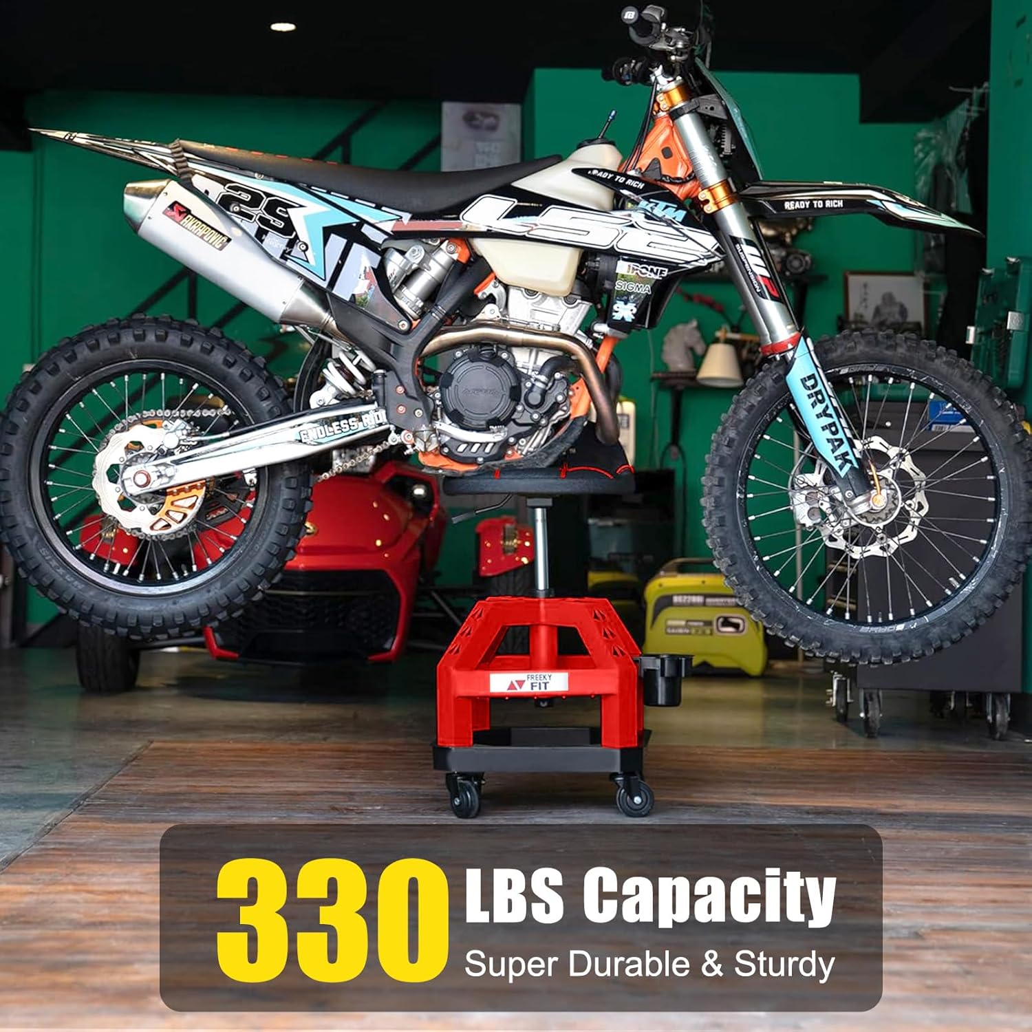 - Adjustable & Non-Marring Rolling Wheels - This Rolling Pneumatic Creeper is equipped with a pneumatic height adjustment mechanism, allowing users to easily adjust the height according 23.25-29.75 inch to their preference and working needs. This ensures optimal comfort and flexibility. It‘s also has smooth-rolling wheels that enable easy mobility around the work place. This allows mechanics to move around effortlessly while working on different projects