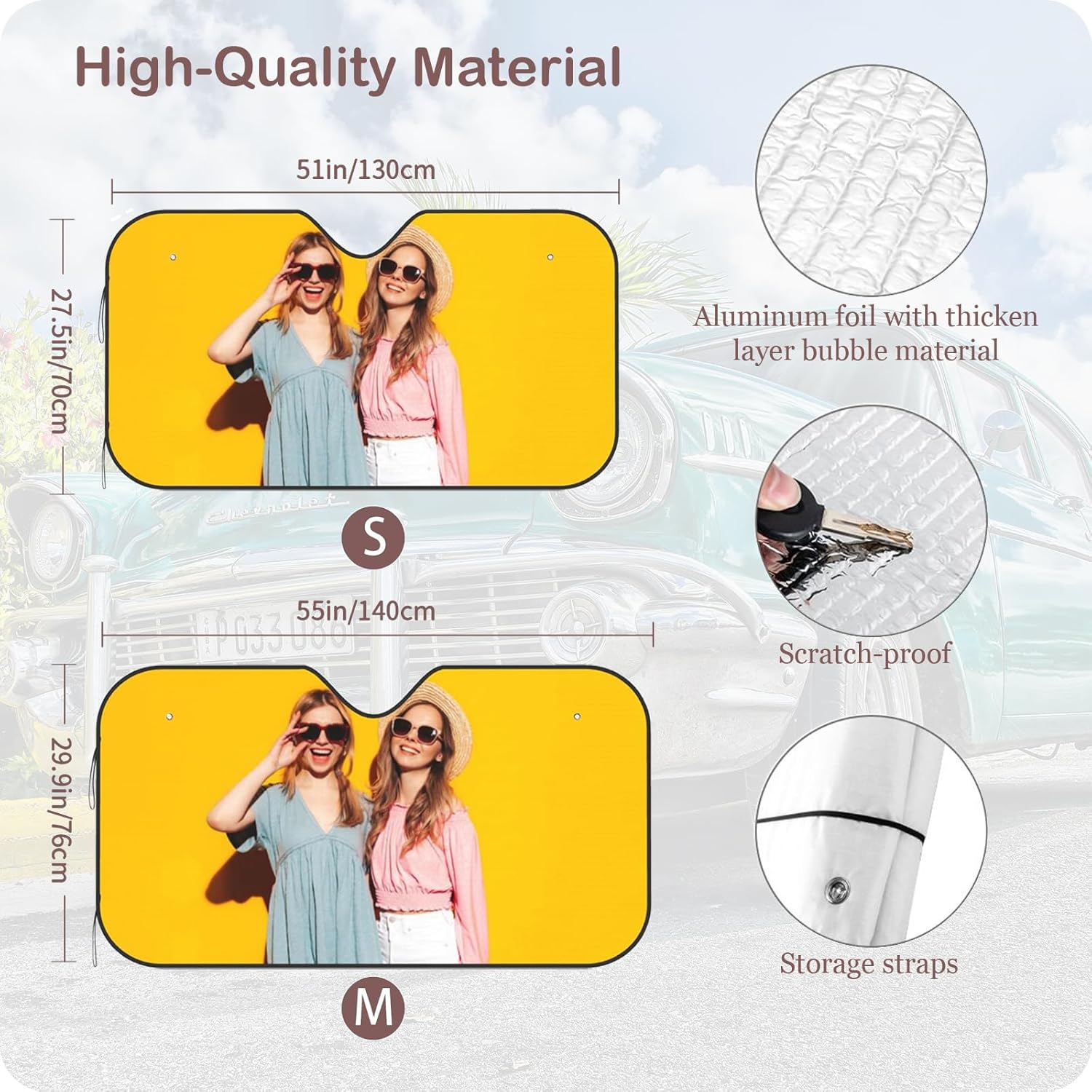 - CUSTOM CAR WINDSHIELD SUNSHADE: Custom personalized car windshield sunshades create a visual start to every drive. You can upload any photo, text, logo, etc. to design a distinctive sunshade. Click the "Customize Now" button to customize a distinctive car sunshade.