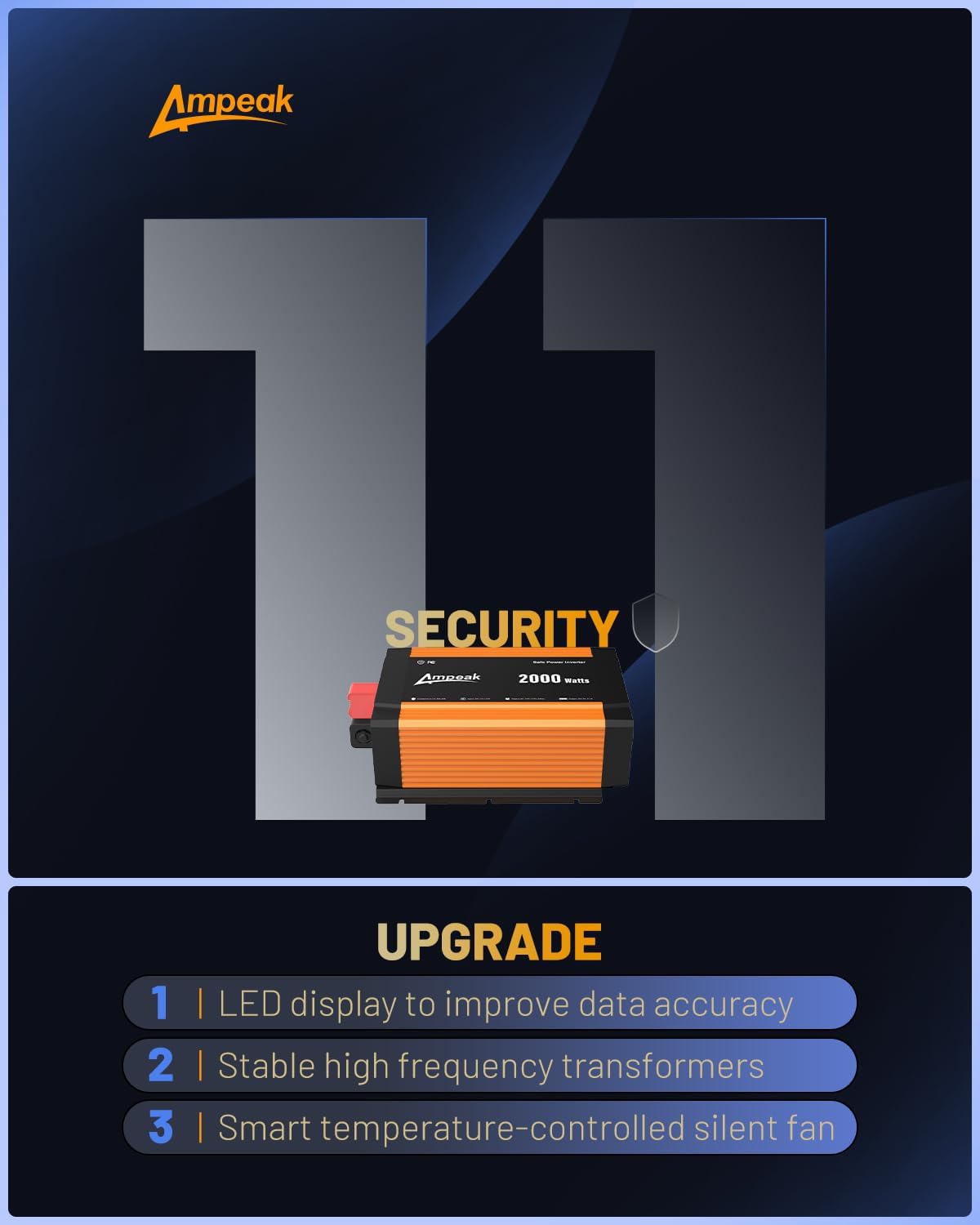 - 11 Safety Protections: Ampeak prioritizes safety with 11 built-in protections, ensuring your power inverter and devices operate safely and reliably—more than double the protections of most other inverters.