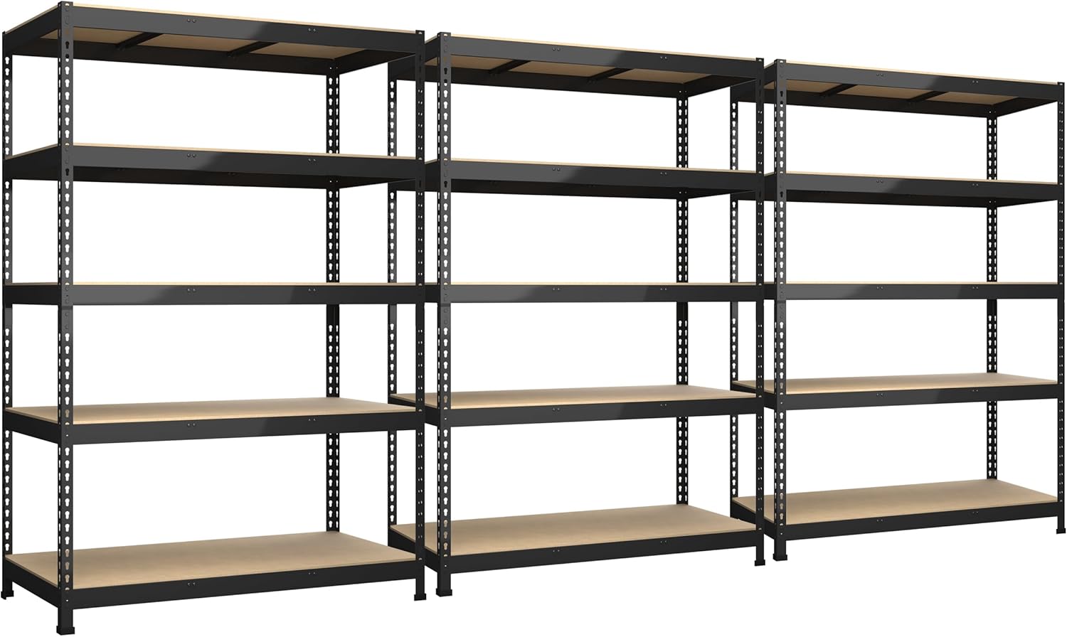 3 Packs 48" W x 24" D x 72" H Adjustable Garage Storage Shelves - 5-Shelf Heavy Duty Shelving Unit, Metal Utility Storage Organizer Racks for Warehouse Pantry Closet Kitchen, Black