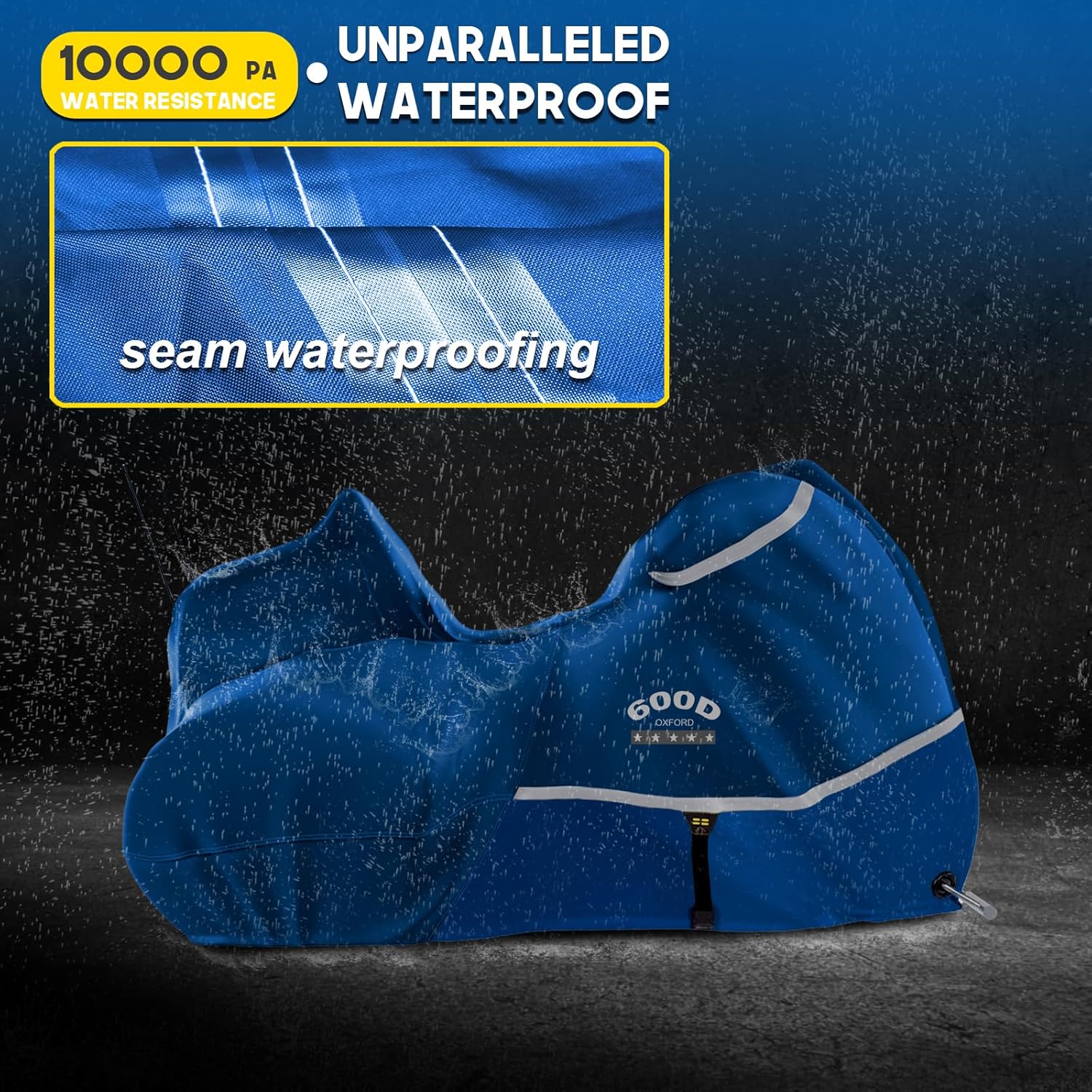 Rosefray Trike Cover,Motorcycle Cover Heavy Duty 600D Waterproof for Trike Models, Tri Glide, and CVO Version, Trike Goldwing, Chidftain, Challenger, Elite Storage, Blue