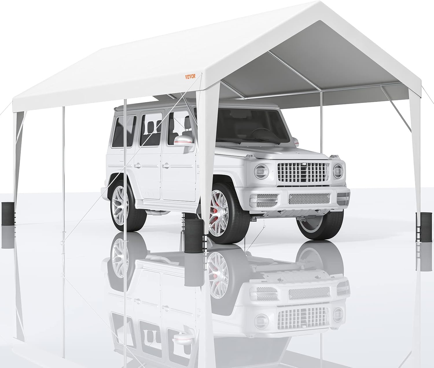 VEVOR Upgraded 10x20 ft Heavy Duty Carport Car Canopy, Car Port Garage Boat Shelter Party Tent with 8 Reinforced Poles and 4 Weight Bags, UV Resistant Waterproof Tarp for SUV, Truck, Boat