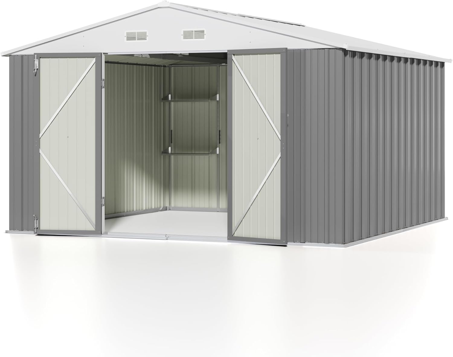 - 【Ample Storage Space】Measuring 10 feet by 10 feet, this shed offers a generous storage area that can comfortably accommodate a wide range of items. Whether you’re storing large power tools, seasonal equipment, or gardening supplies, there is ample room to organize everything neatly. This makes it easier to find what you need and keeps your outdoor space uncluttered.