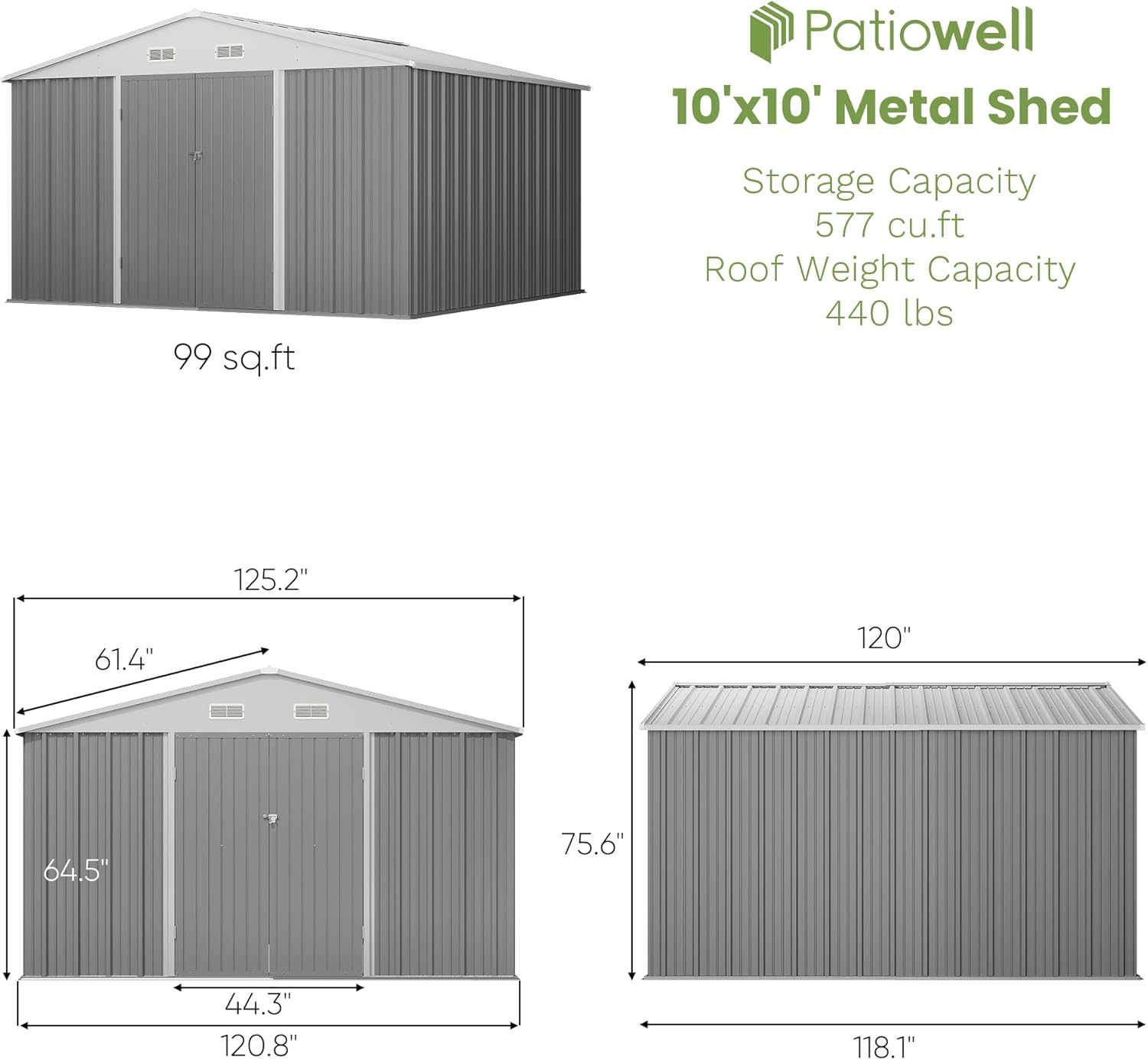 - Product Dimensions : 118.1"D x 120.8"W x 75.6"H
