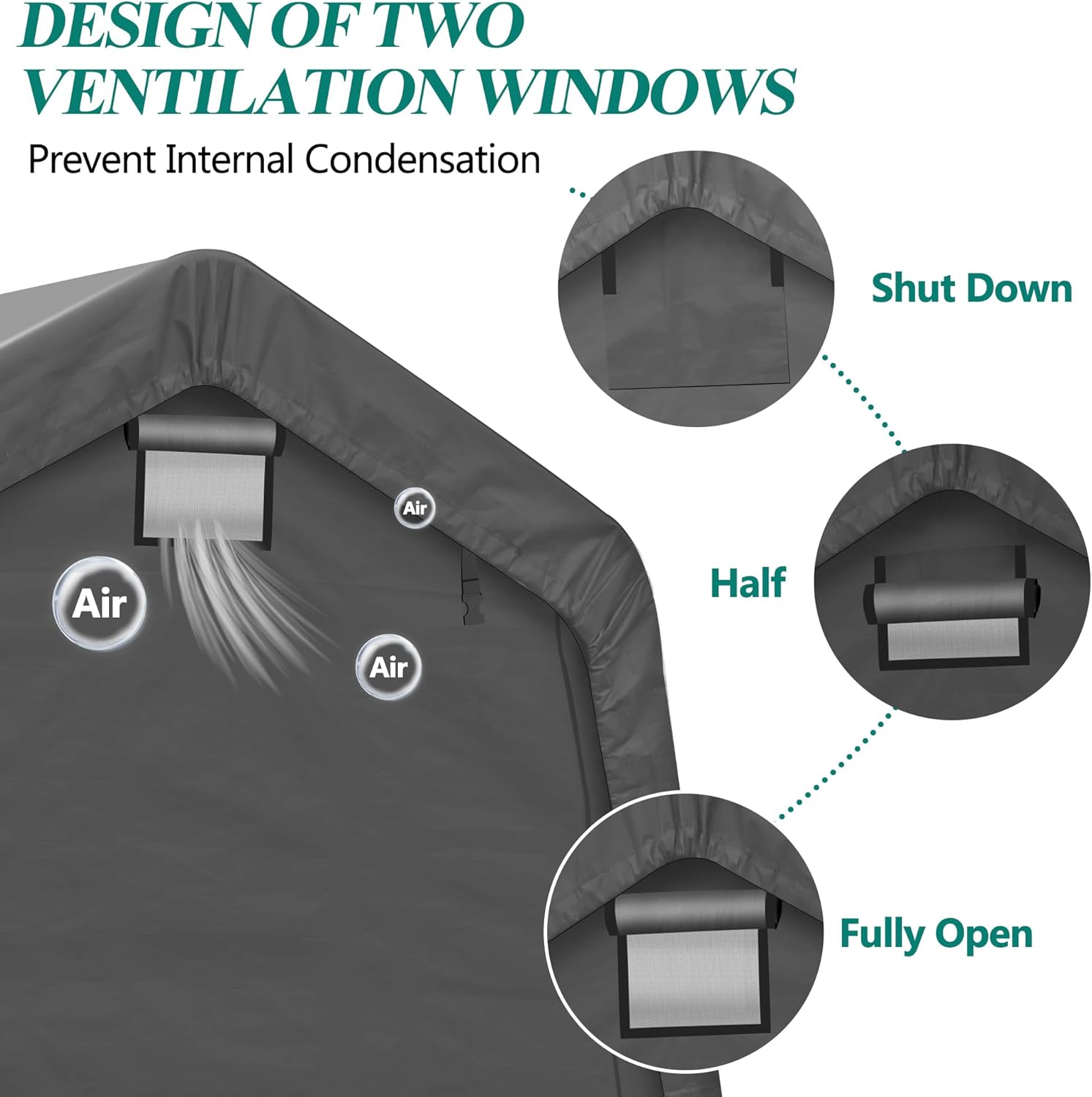 - 🧰170G WATERPROOF CANOPY COVER: Our Storage Shelter is made of waterproof 170g PE tarp with Roll-up Ventilation Windows. Heavy-duty Zipper Design