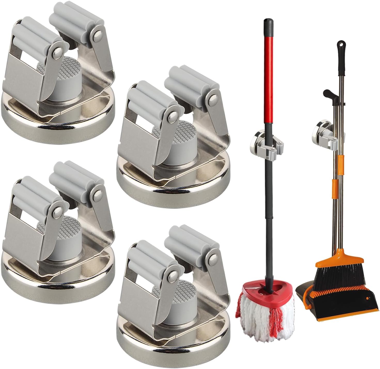 MUTUACTOR Magnetic Broom Holders,4pcs Sturdy Heavy Duty Magnetic Clips Wall Mount,10lbs No Drilling Anti-broken Magnetic Hooks Broom Mop Brackets for Work Cargo Garage Laundry Van Accessories