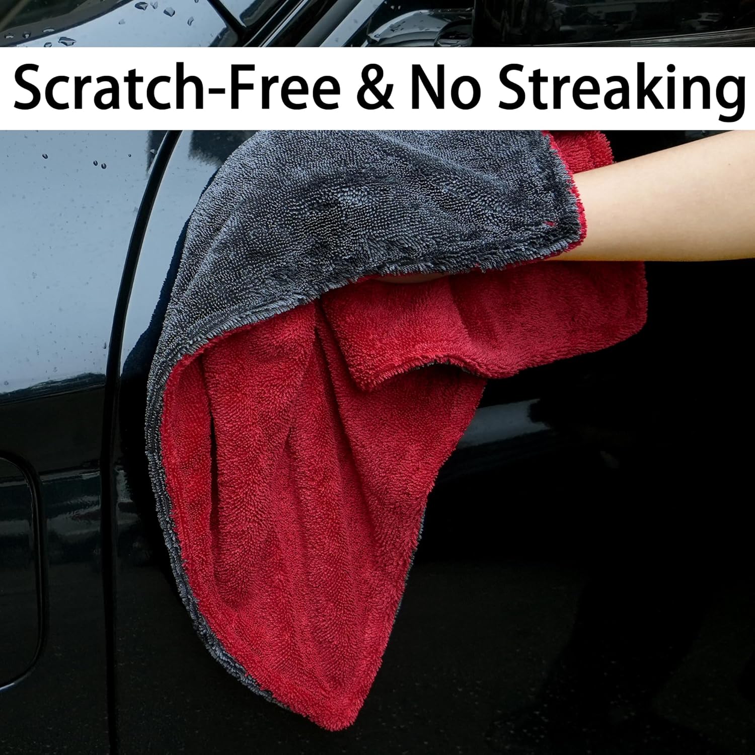 LIVOS Car Drying Towel, Premium Microfiber Towels for Cars, 1000GSM, Edgeless Twisted Loop Design, No Streaks, Scratches, or Water Spot, Absorbent Wash Towel, 18" x 24" (Red&Grey)