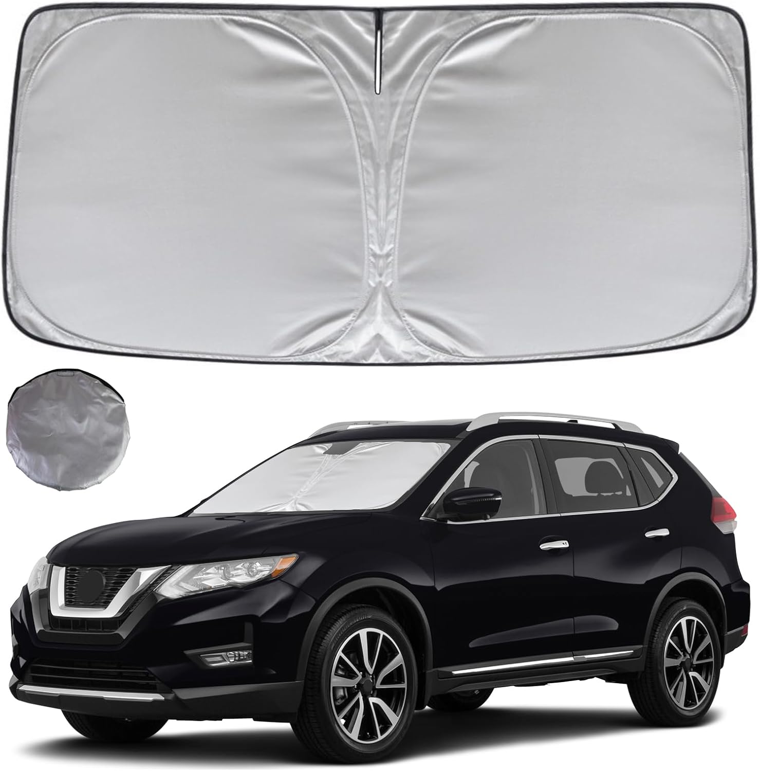- KAYZT windshield sun shade is precise custom fit for 2014-2020 Nissan Rogue (NOT for Rogue Sport & Rogue 3rd Gen), Thoroughly covers every corner of the windshield, Tailored to accommodate rear view mirror, Ensuring a seamless and snug fit without obstruction, Must have car accessories for Nissan Rogue
