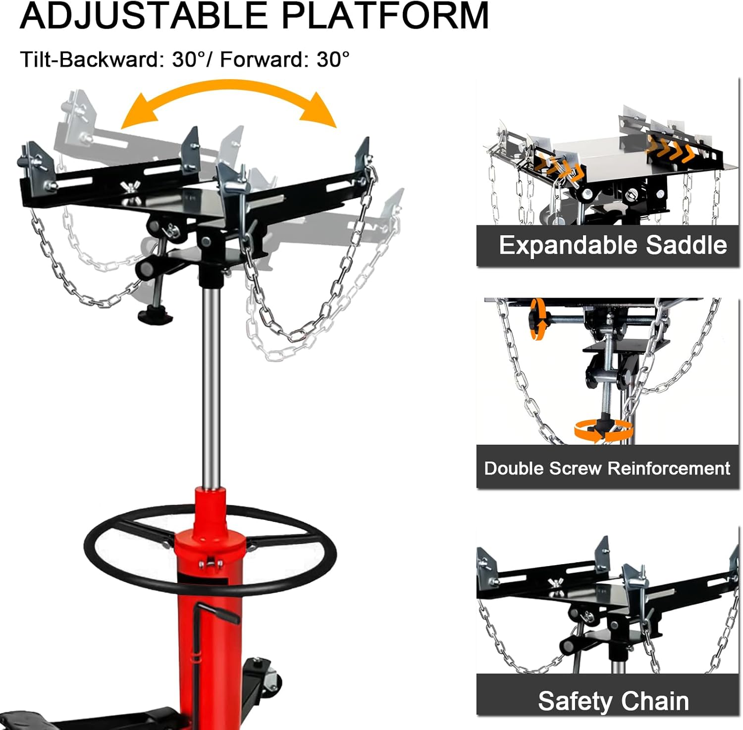 Transmission Jack 1660 lbs/ 0.75 Ton Capacity Hydraulic Telescopic Transmission Jack 34" - 68" Adjustable Height Telescoping Transmission Hydraulic with 360° Swivel Wheels Lift Hoist