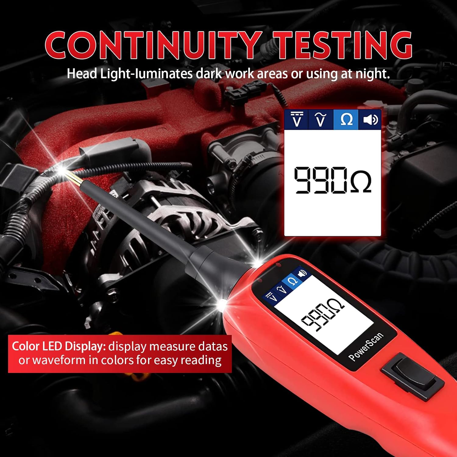 - 【2025 New Autel Circuit Tester: PowerScan PS100】The launch of Autel PowerScan PS100 is to offer quick complete diagnose solution for all 6- to 30-volt vehicle electrical systems, featuring AVOmeter, test light, built-in flashlight, short circuit indicator, relay/component tester, continuity tester and bad ground indicator, the PowerScan is powerful yet affordable, allowing users to check circuitry in one single step. A good-to-have tool for technicians.