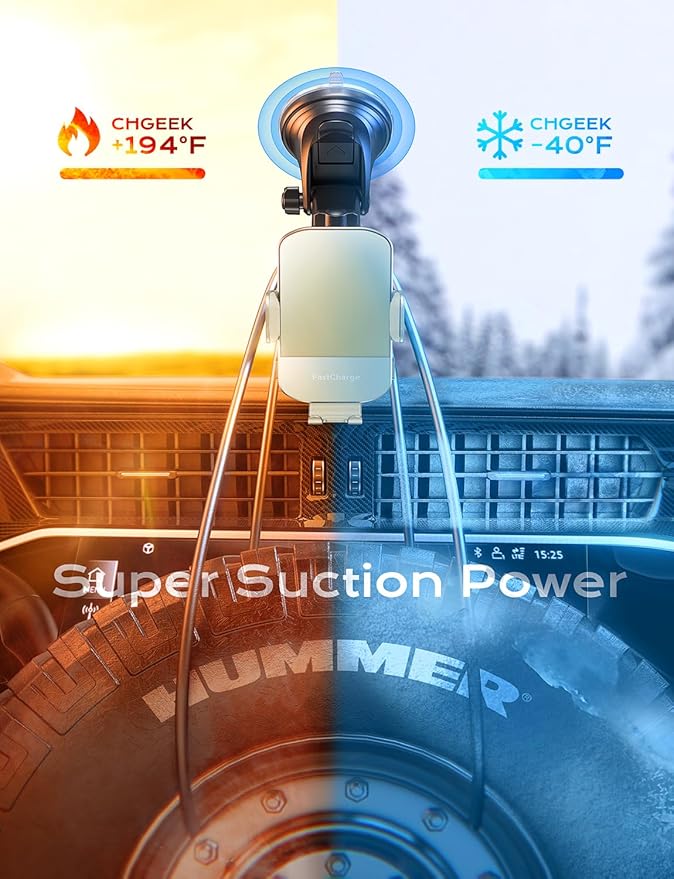 - 【Case Friendly & Flexible Angle Adjustment】Enjoy hassle-free charging through phone cases up to max 4mm(0.16 inch) thick with our CHGeek phone holder for car. This product is not compatible with otterbox phone case (its thickness is too thick). Please note that metal cases, magnets, credit cards, grips, and stands may interfere with charging. For optimal viewing and safe driving, the 360° rotating sphere and retractable & foldable bracket allow you to adjust the angle to your preference. The Otterbox phone case is too thick, causing it to be incompatible with this wireless charger.