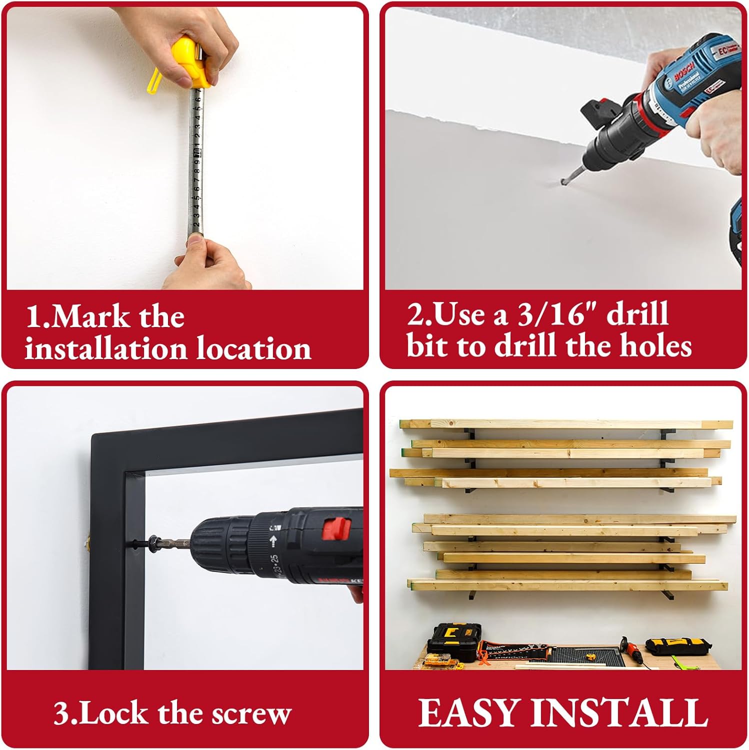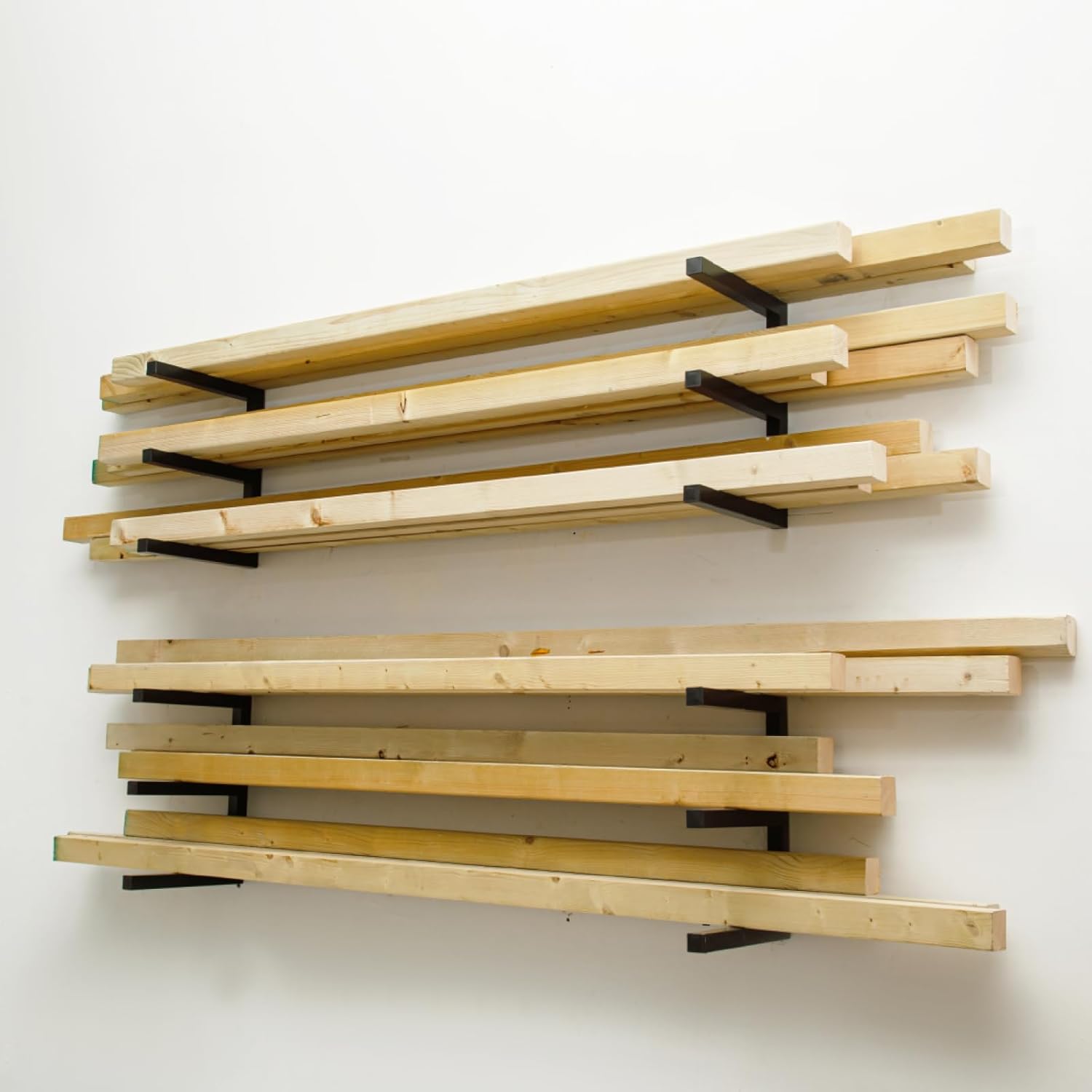 - 【Weight Capacity of 1200 LBS】Our lumber rack wall mounted is made of powder-coated 1⅙” (3 cm) steel tube construction。After many tests, each shelf can hold up to 2000 lbs, which means a total weight capacity of 1200 lbs