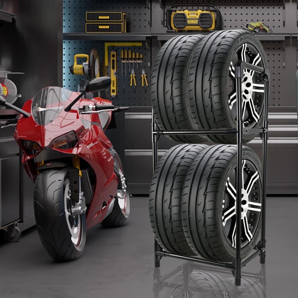 - Double-layer Design: The top and bottom layers can accommodate two tires each, which can exactly storage four tires, and can save the area of use.