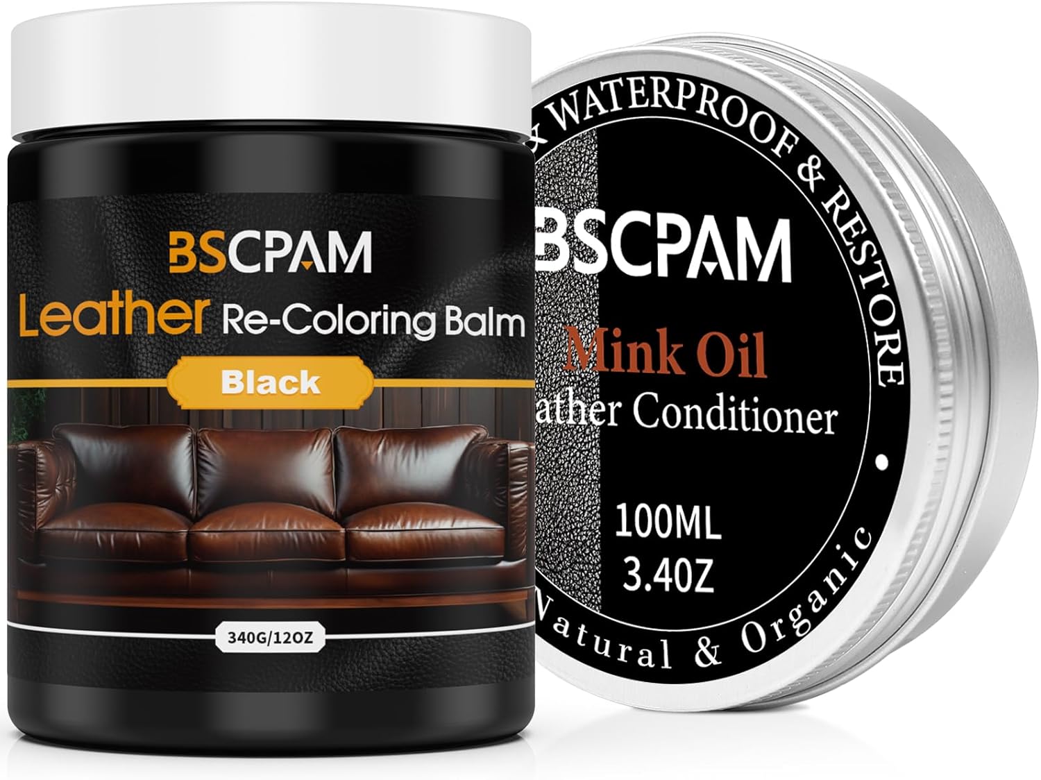 - Leather Recoloring Balm & Mink Oil 2 in 1 kit: BSCPAM Large Volume's Leather recoloring balm can restore fading color leather furniture surface to its former glory. Bring all the leather back to its original colour. and Polished leather with Mink oil, It makes the leather more shiny and lubricated, and also protects the surface of the leather, making the surface waterproof, anti-division and more durable.