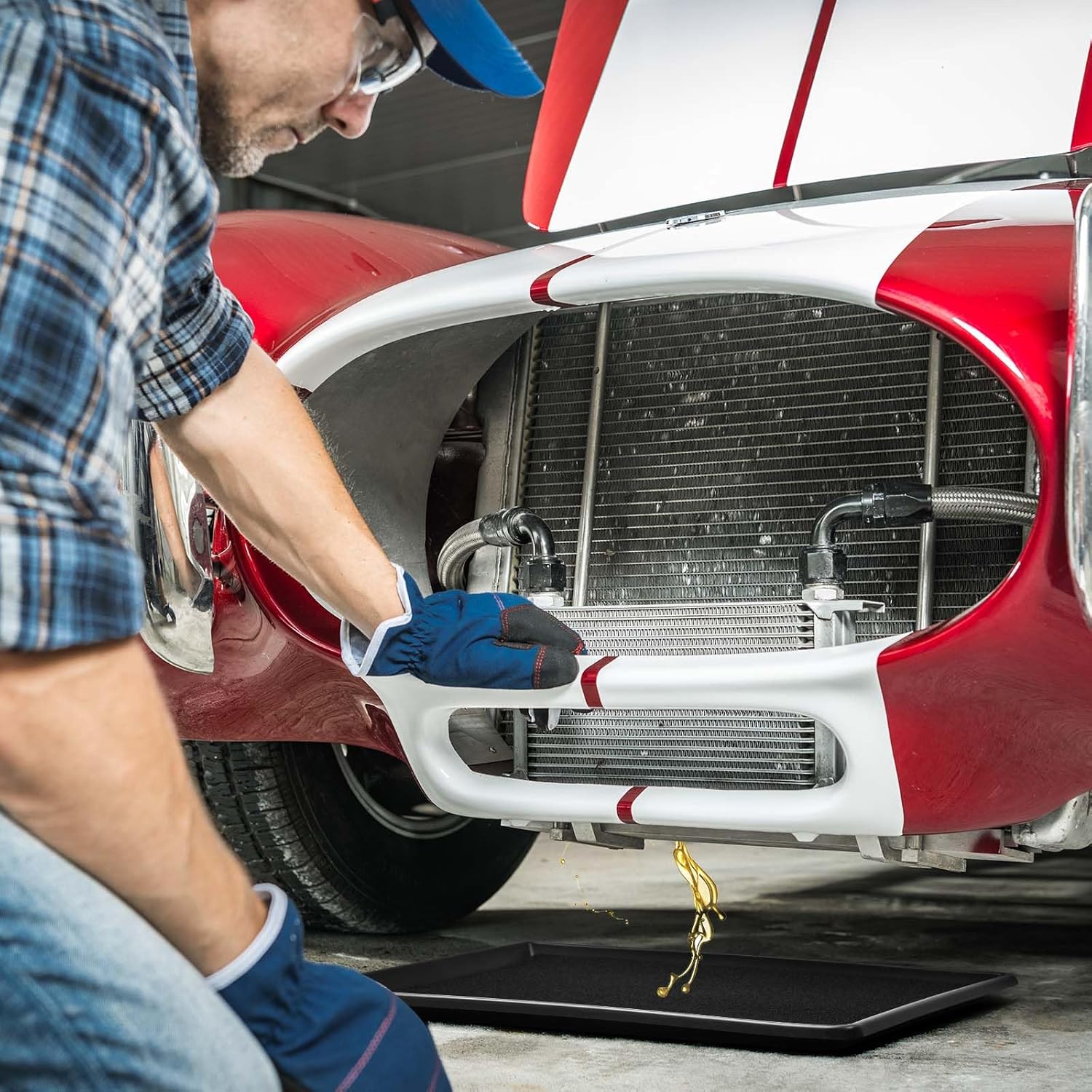 - Package Including: our package contains 2 sets of oil drip tray that measures 27 x 20 x 1.4 inches/ 67.5 x 51.5 x 3.5 cm and drip mat for garage car that measures 24 x 18 x 0.4/ 60 x 46 x 1 cm; The good combination can meet your use needs