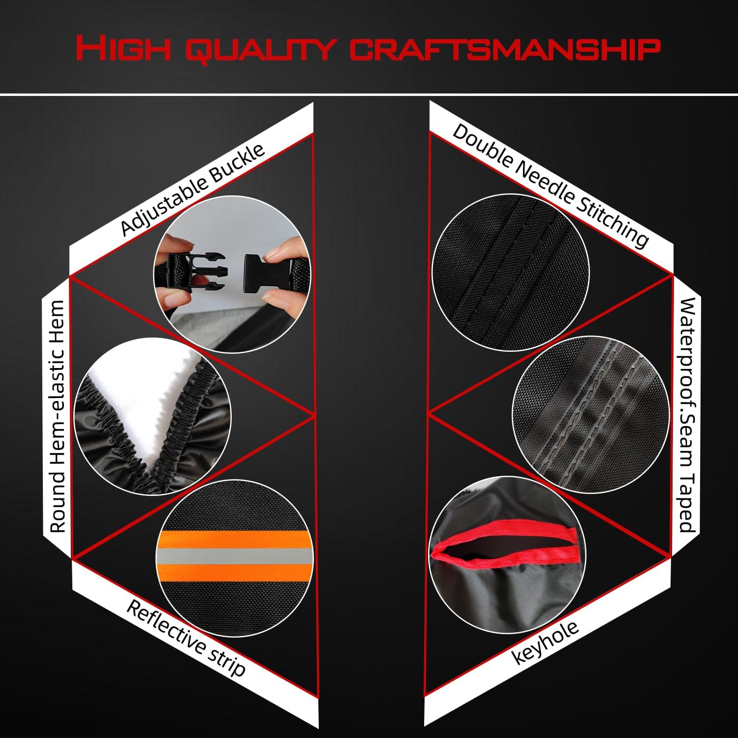 - Our motorcycle cover is made from high-quality 600D Oxford material, specially reinforced for excellent waterproof performance.