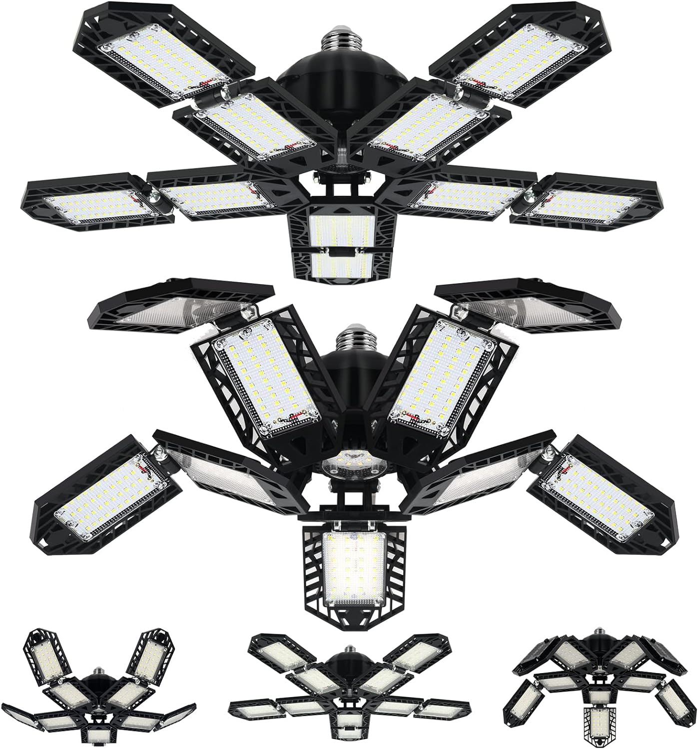 LED Garage Lights Bulb 10+1 Panels 2 Pack -200W, 20000LM 6500K Led Shop Light with 6+1 Deformable Panels, Ceiling Lights for Basement Barn Light Garage