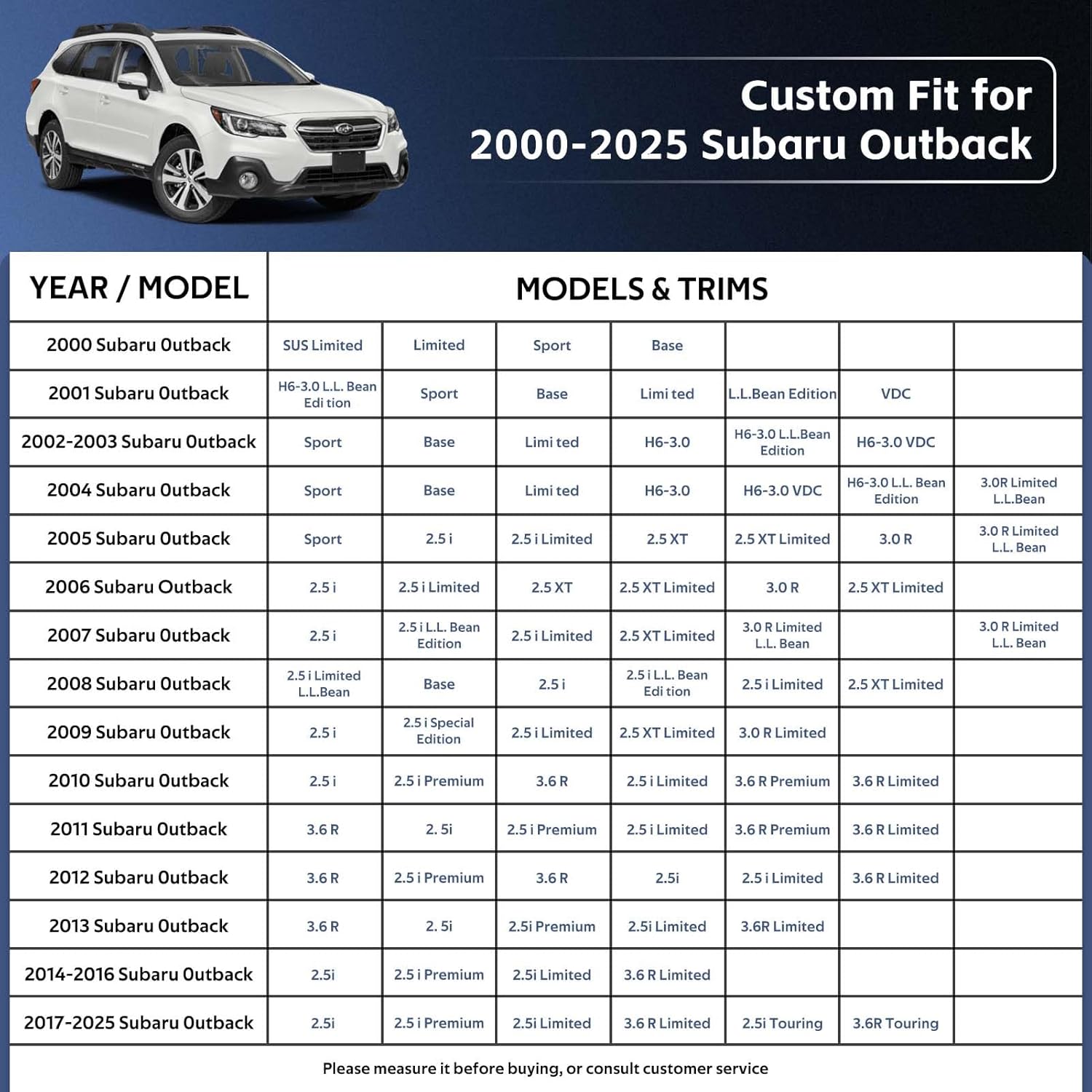 - Material Polyethylene : Vehicle Service Type Subaru Outback (1994-2024)
