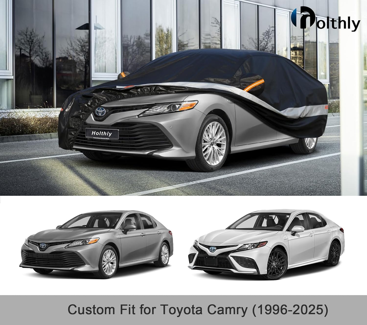 - 【Perfect Fit】— Holthly has conducted experiments to obtain a customized car cover specifically designed for Toyota Camry (1996-2025). The custom-like fit of the full cover not only enhances the -aesthetics of your vehicle but also provides superior wind resistance, thereby prolonging the lifespan of the hood. It offers enhanced and long-lasting protection for your car.