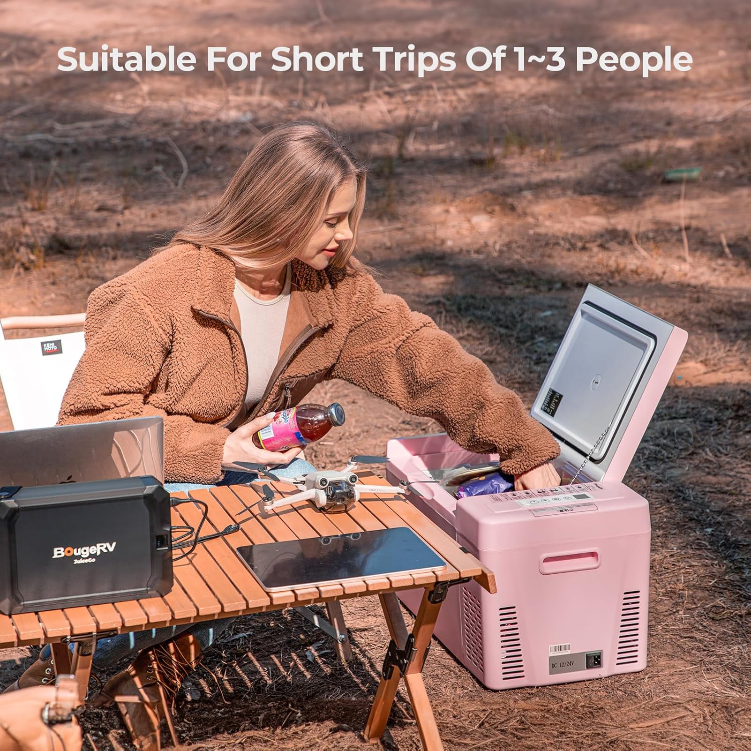 BougeRV Pink 23Quart Portable Refrigerator, 12 Volt Fridge 22L, Portable Freezer Compressor Cooler 12/24V DC 110~240 Volt AC for Truck Van RV Camper -8℉~50℉