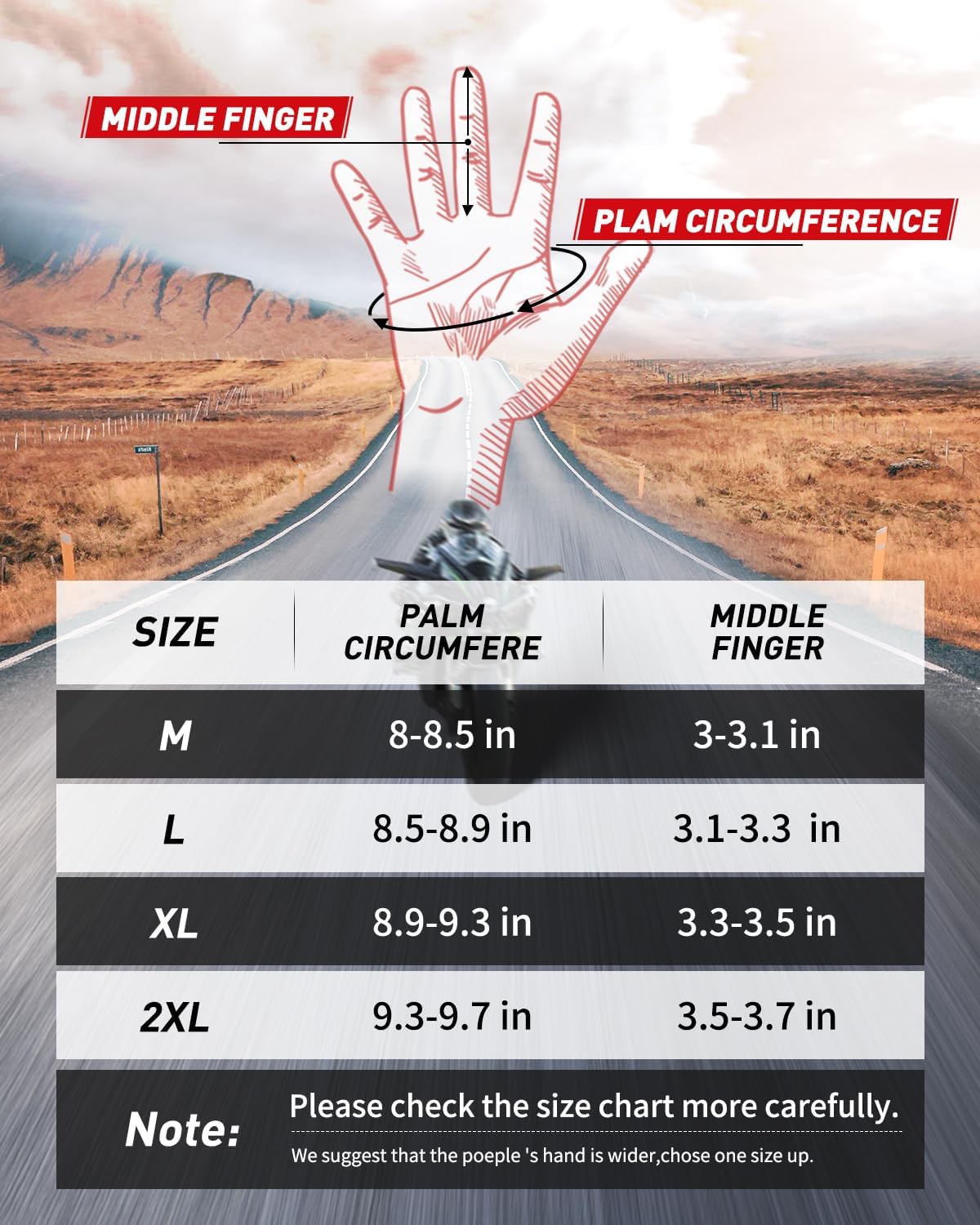 - 【Full Protection】: With hard knuckles and palm pads protection, the bike gloves protect your hands while fast racing. The padded on the palms and cartilage keep you safe even in a higher speed crash.
