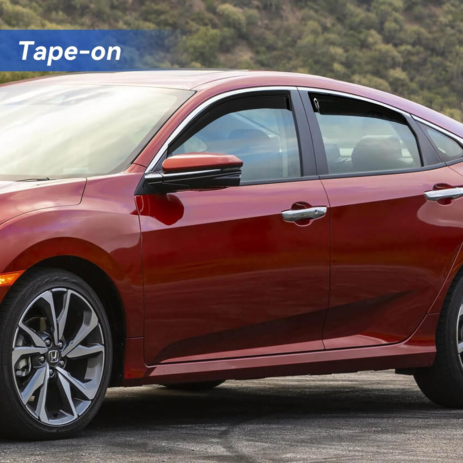 - 【Easy STICK-ON style】Outside Mount Style/ NOT In-channel. No drilling or special hardwares required. Test fit the visors first to make sure it's the right model before you tape them on.[NOTE: Don't wash your car 24 hours after installation.]