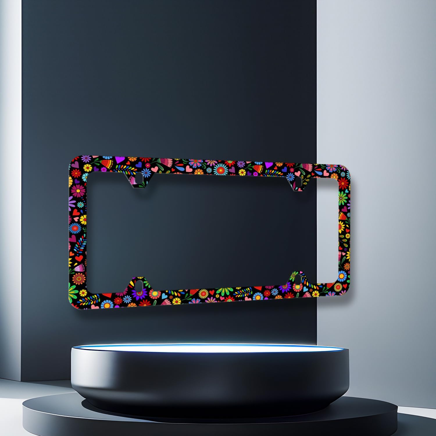 Abstract Flowers License Plate Frame Bright Colorful Art Floral License Plate Stainless Steel Flowers Car Accessory Funny License Plate Decoration Women Size 12.2" x 6.2" with Screws