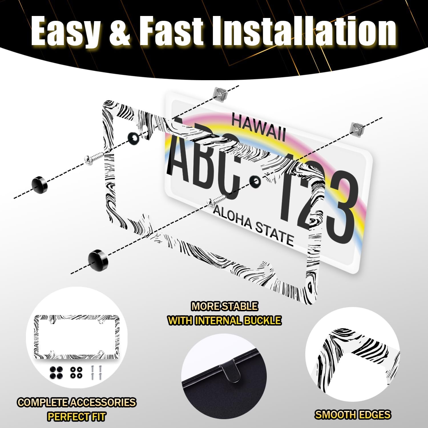 Abstract Marble Print License Plate Frame Wood Texture Marble License Plate Stainless Steel Colorful Car Accessory Funny License Plate Decoration Men Women Size 12.2"x6.2" with Screws