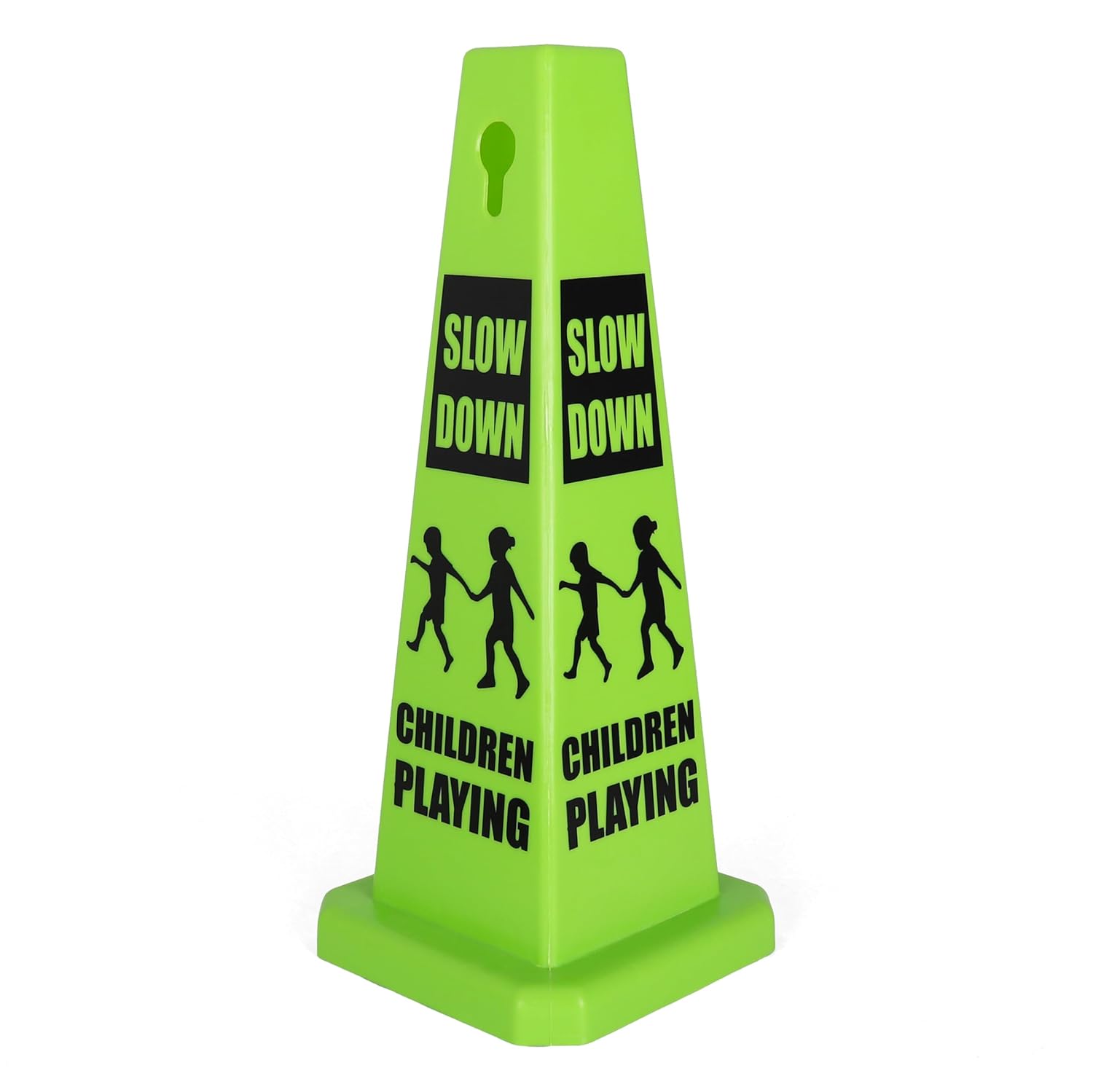 Imperial Standard Children Playing Cone - Children at Play Sign - Four-Sided Slow Down Kids Cones - Child at Play Signs - Drive Slow/Kid Alert Sign (2 Pack - Green)