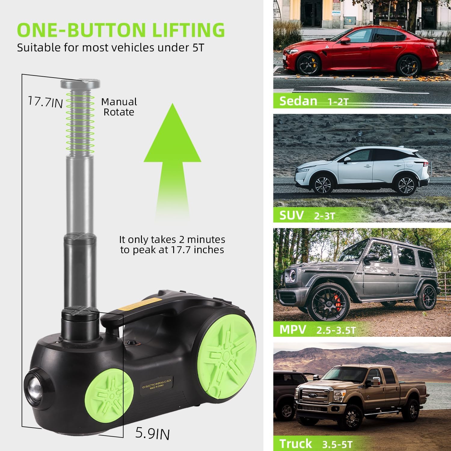 EFFIROSO Electric Car Jack Kit 5 Ton 12V Hydraulic Floor Jack with Impact Wrench Tire Inflator Pump for Vehicle Emergency Repair Kit 11023lbs (Black and Green)