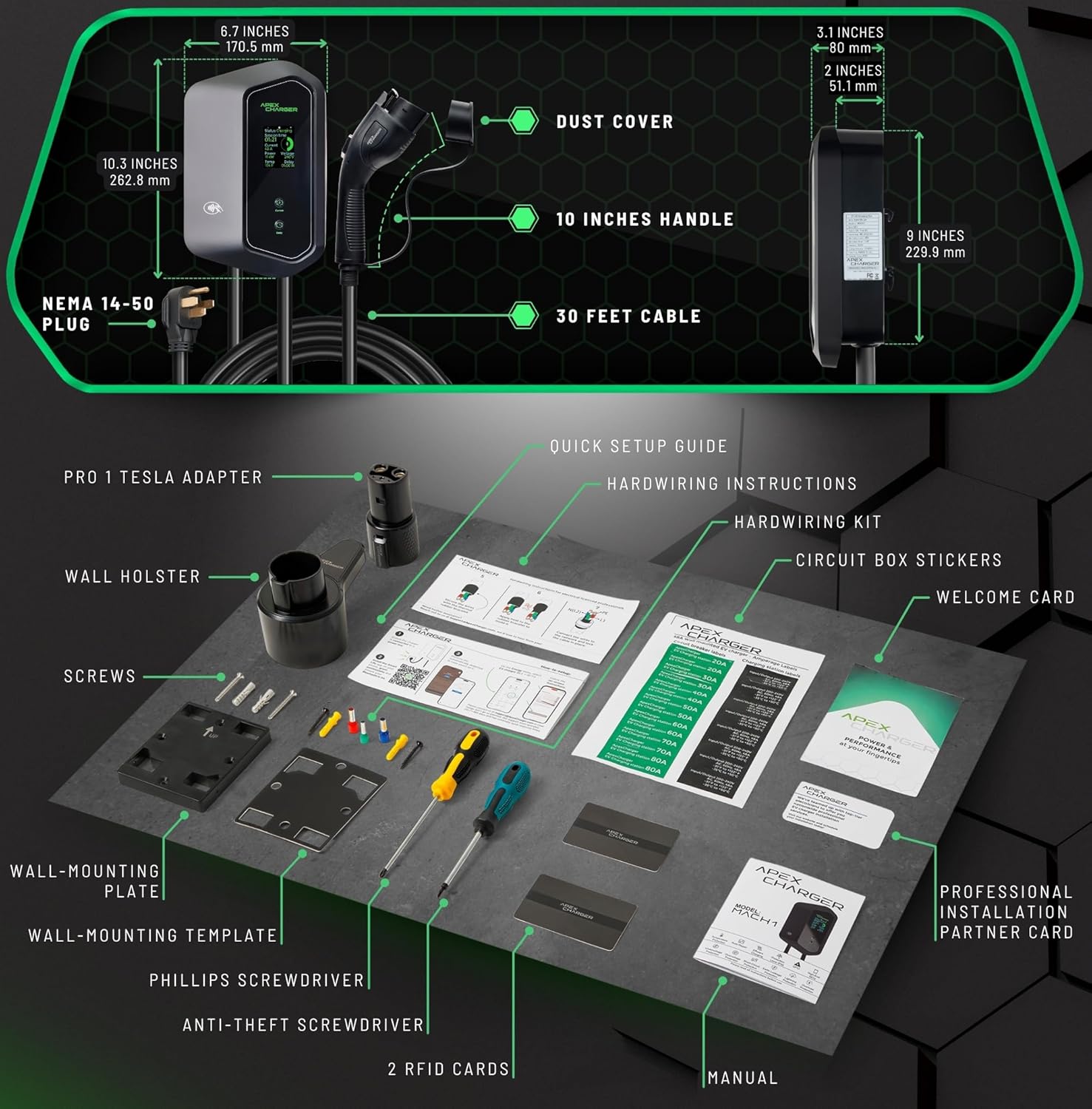 - An American brand 4 all EVs in the US: ApexCharger features high end displays on all of its level 2 charging station. Includes a J1772 connector & our exclusive PRO 1 NACS adapter to charge your Tesla; a turnkey solution design to fit every electric vehicle in America's fleet.