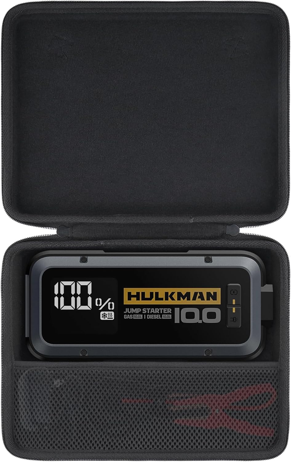 - Portable Car Starter Case:Suitable for storing hulkman alpha100 smart jump starter, keep your hulkman 100 jump starter safe while traveling, with dustproof, surface waterproof, drop-proof and so on. All-round protection for your hulkman alpha 10.0 jump starter.