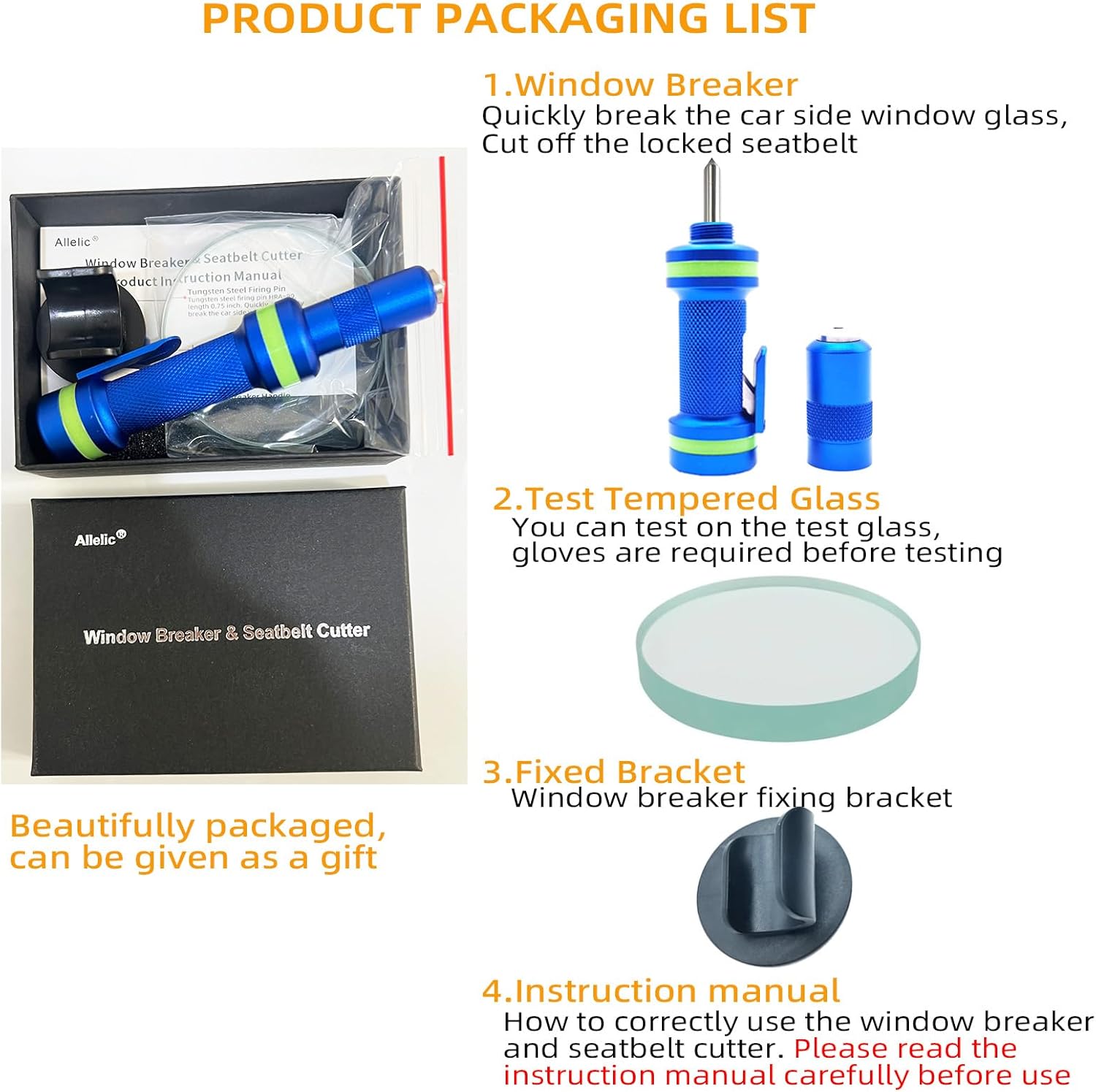 Allelic Car Window Breaker Tool, Window Breaker Seatbelt Cutter, Window Breaker, Glass Breaker, Spring Loaded Window Breaker for Land & Underwater (Blue)