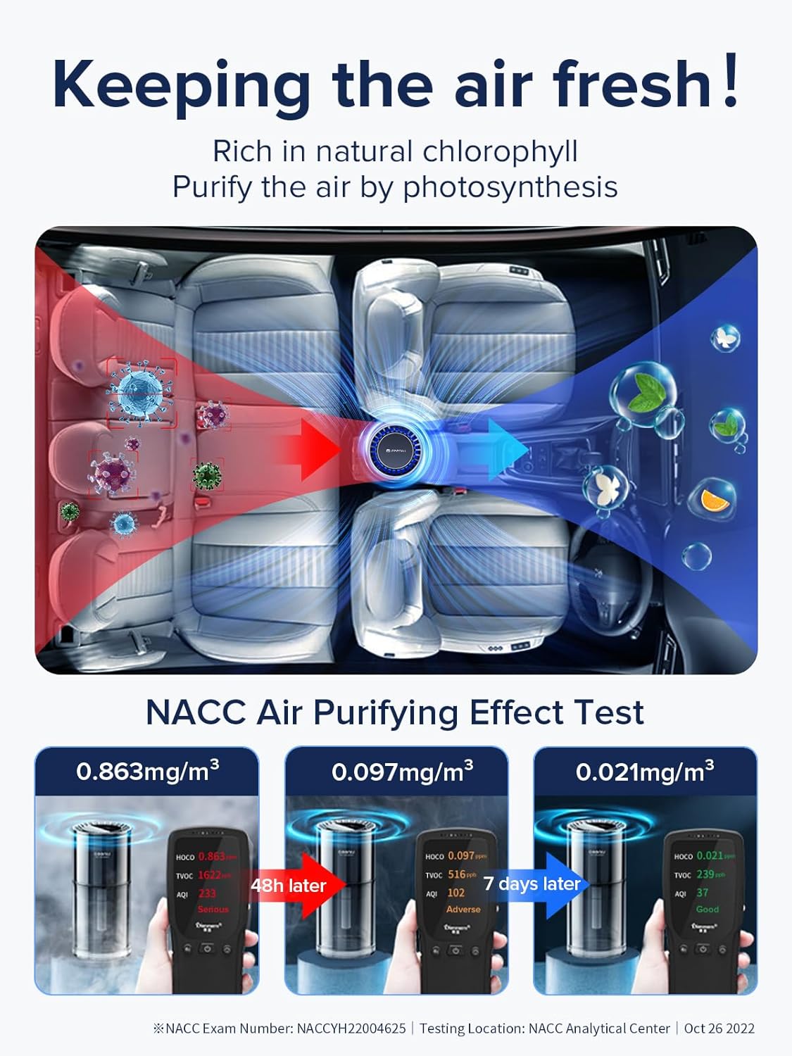 - 【Natural Fragrance】Our car air fresheners is made with natural plant extracts and contains natural chlorophyll. It effectively breaks down harmful toxins instead of simply masking unpleasant odors. Additionally, we never use fragrances that contain alcohol or additives, ensuring that pregnant women, children, and seniors can safely use it