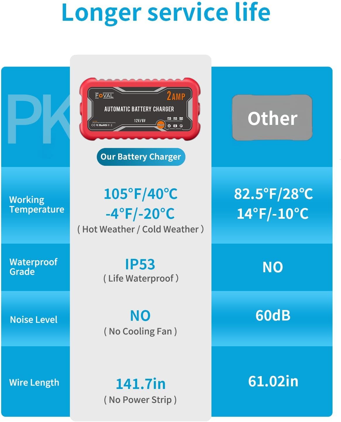 - 【What You Get】- FOVAL Battery Chargers with DC O-ring terminals, DC battery clips, user manual, 18-month warranty, and friendly customer service. If you aren't satisfied with the product, please feel free to contact us, and we will solve it for you in the first time.