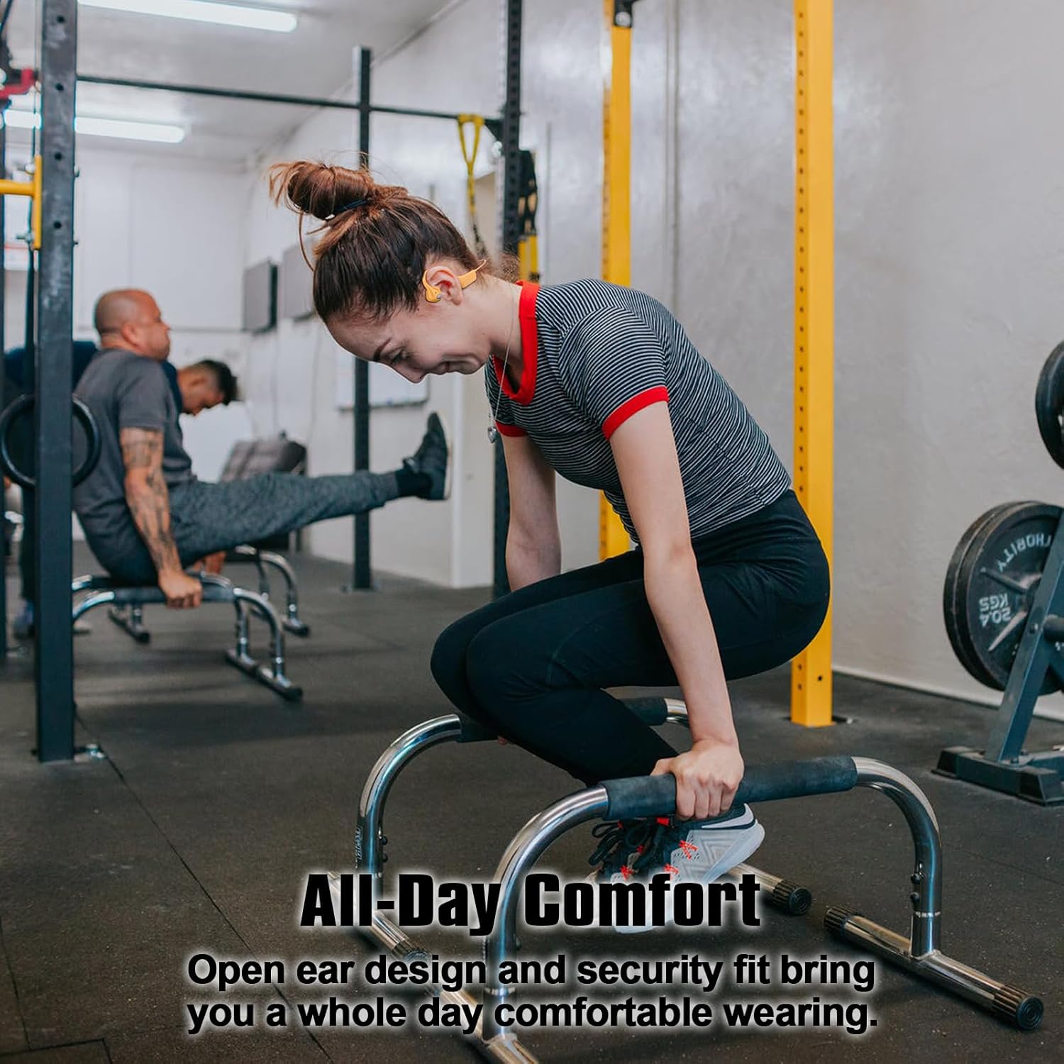 - Bone Conduction Technology: Bone conduction earphones deliver sound through your cheekbone, without passing through the external ear canal, perfect for people who like listening all day. (If listening to music in a noisy environment, please insert sponge plugs in your ears to get more loud and clear sounds)
