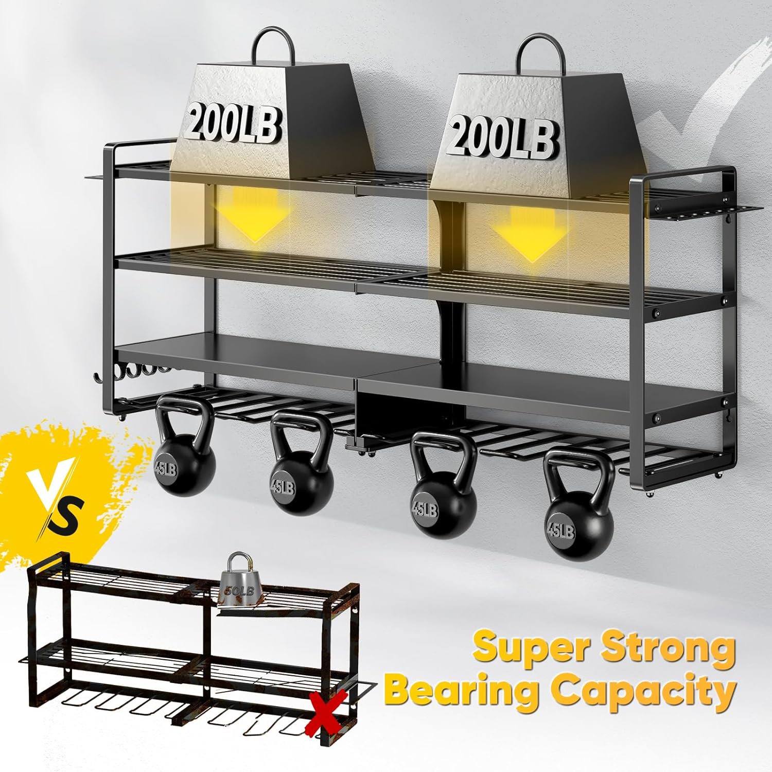 Large Power Tool Organizer Wall Mount,4 Layers Heavy Duty Metal Loads 400lbs,Power Tool Shelf Battery Storage with 8 Cordless Drill Holder,Utility Racks for Garage Workshop