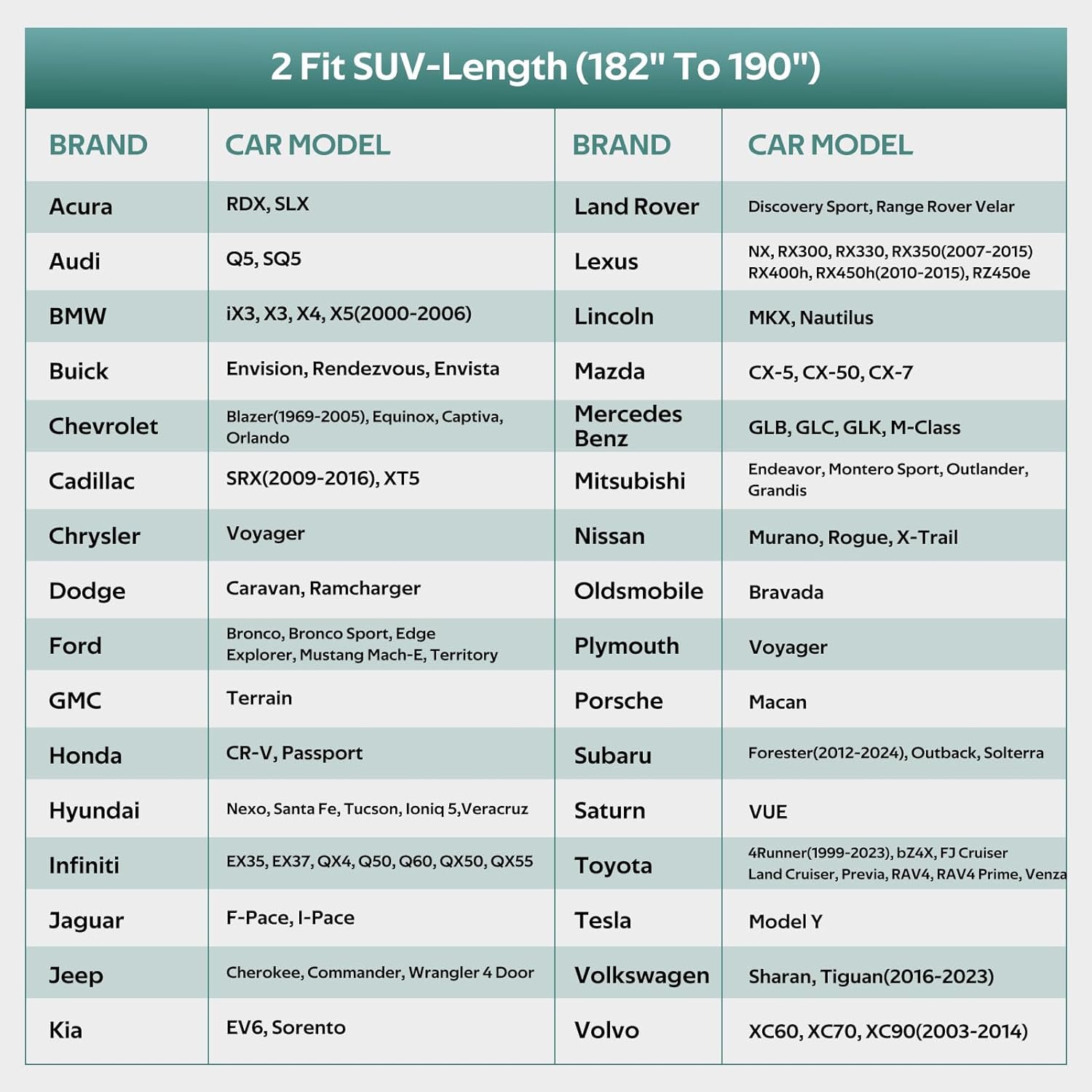 - 【CHOOSE THE RIGHT MODEL】: Molebt SUV car cover fits SUV/Jeep Length: 182"-190". For example Hyundai Santa Fe, Toyota RAV4, Nissan Rogue, Volkswagen Tiguan, Kia Sorento, Nissan Murano, Jeep Cherokee, Subaru Outback, Audi Q5, Lexus RX350, Mazda CX-5 etc.