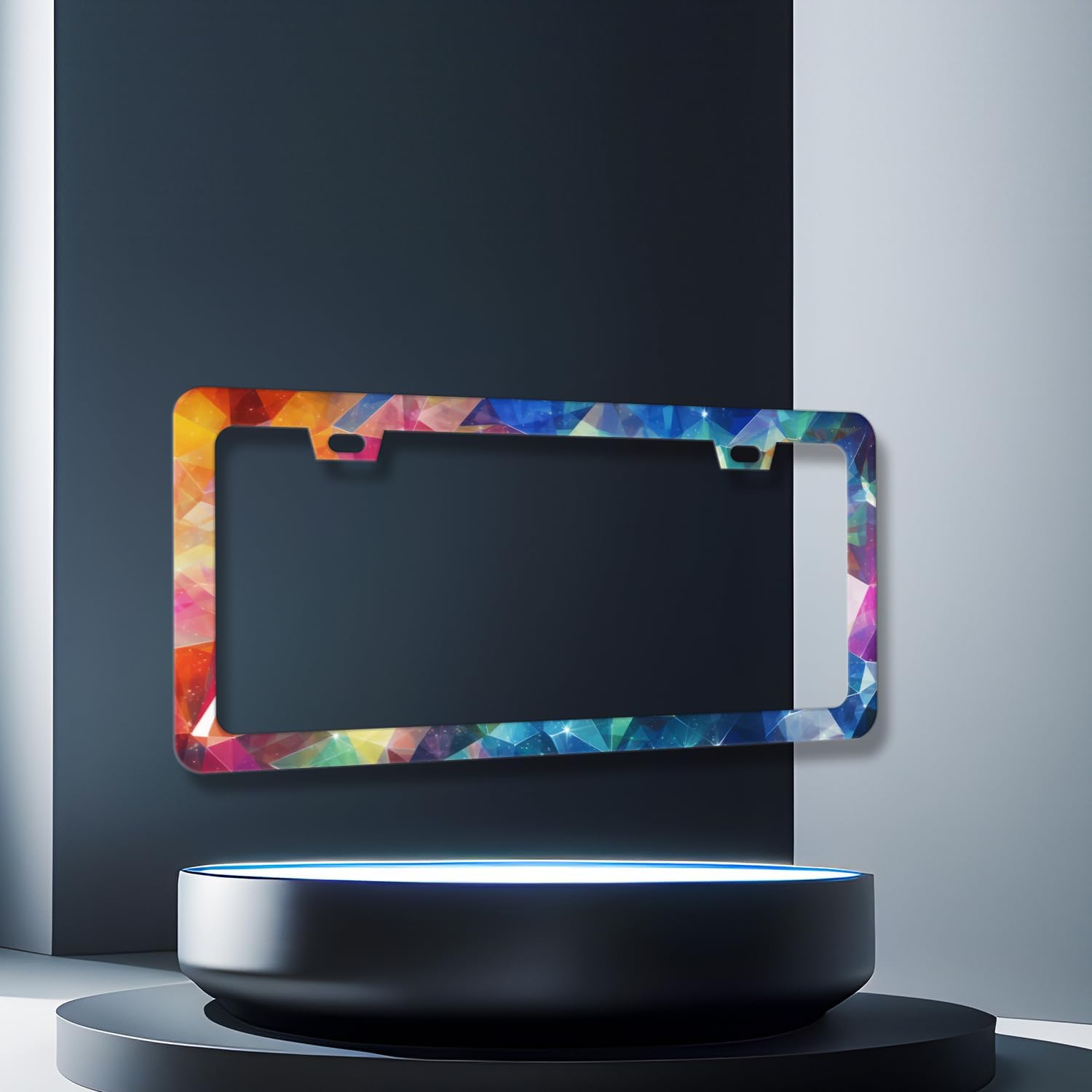 Abstract Shiny License Plate Frame Colorful Bling License Plate Holder for Personalized Car Decorative Stainless Steel Funny License Plate Cool Auto Part with Screws Men Women 12.2" x 6.2"