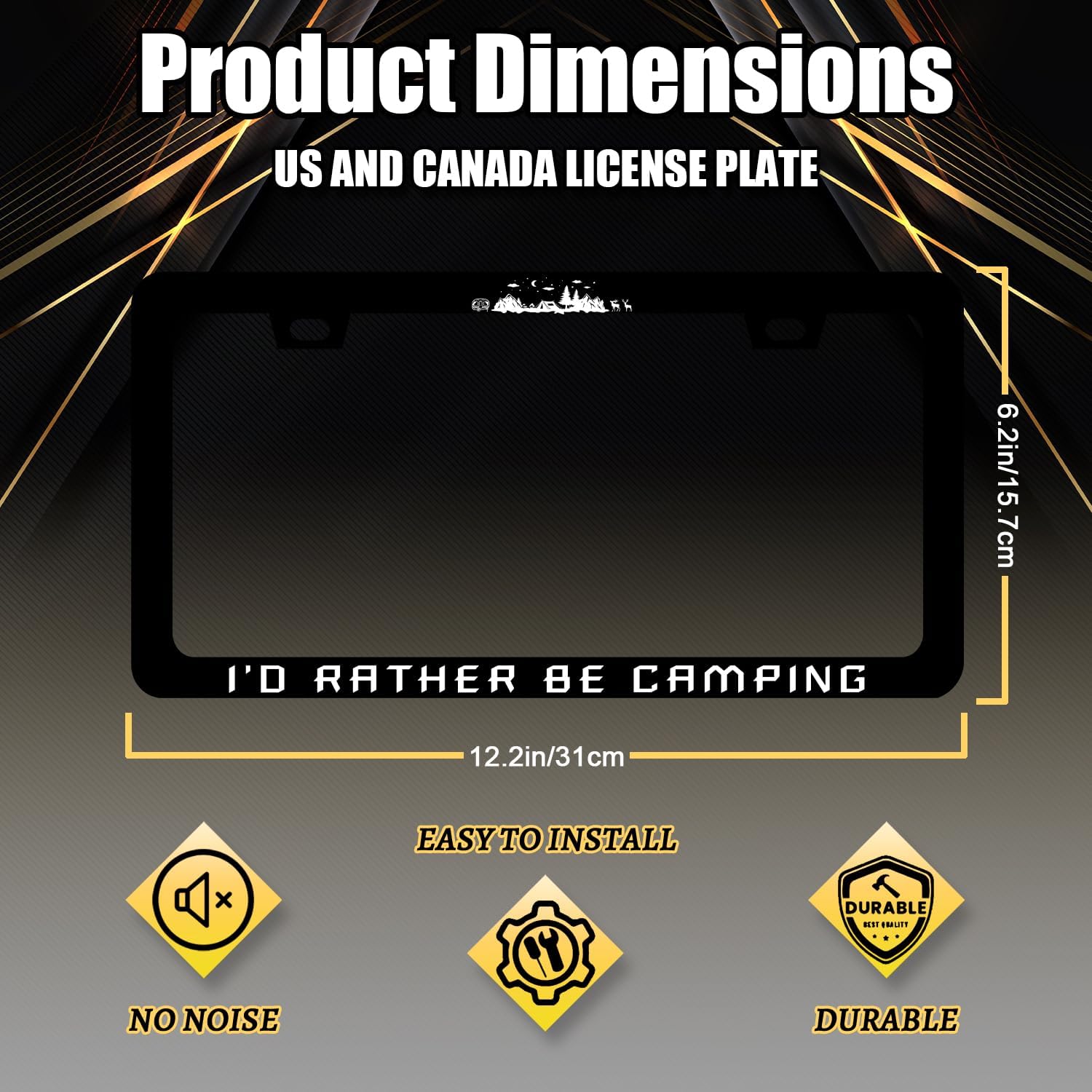I'd Rather be Camping License Plate Frame Funny Camper License Plate Holder for Personalized Mountain Car Decorative Stainless Steel License Plate Camp Auto Part with Screws 12.2" x 6.2"