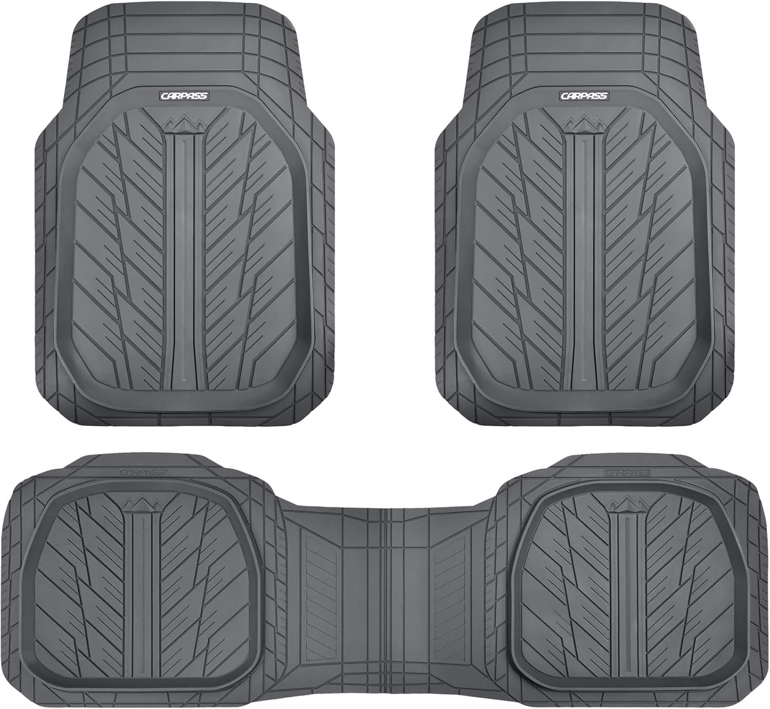 CAR PASS DeepDish Floor Mats for Cars Full Set,Heavy Duty Rubber Car Mats 3-Piece,Universal Waterproof Trim-to Fit Automotive Floor Mats for Truck Van SUV, Durable All-Weather Car Mats(Pure Gray)
