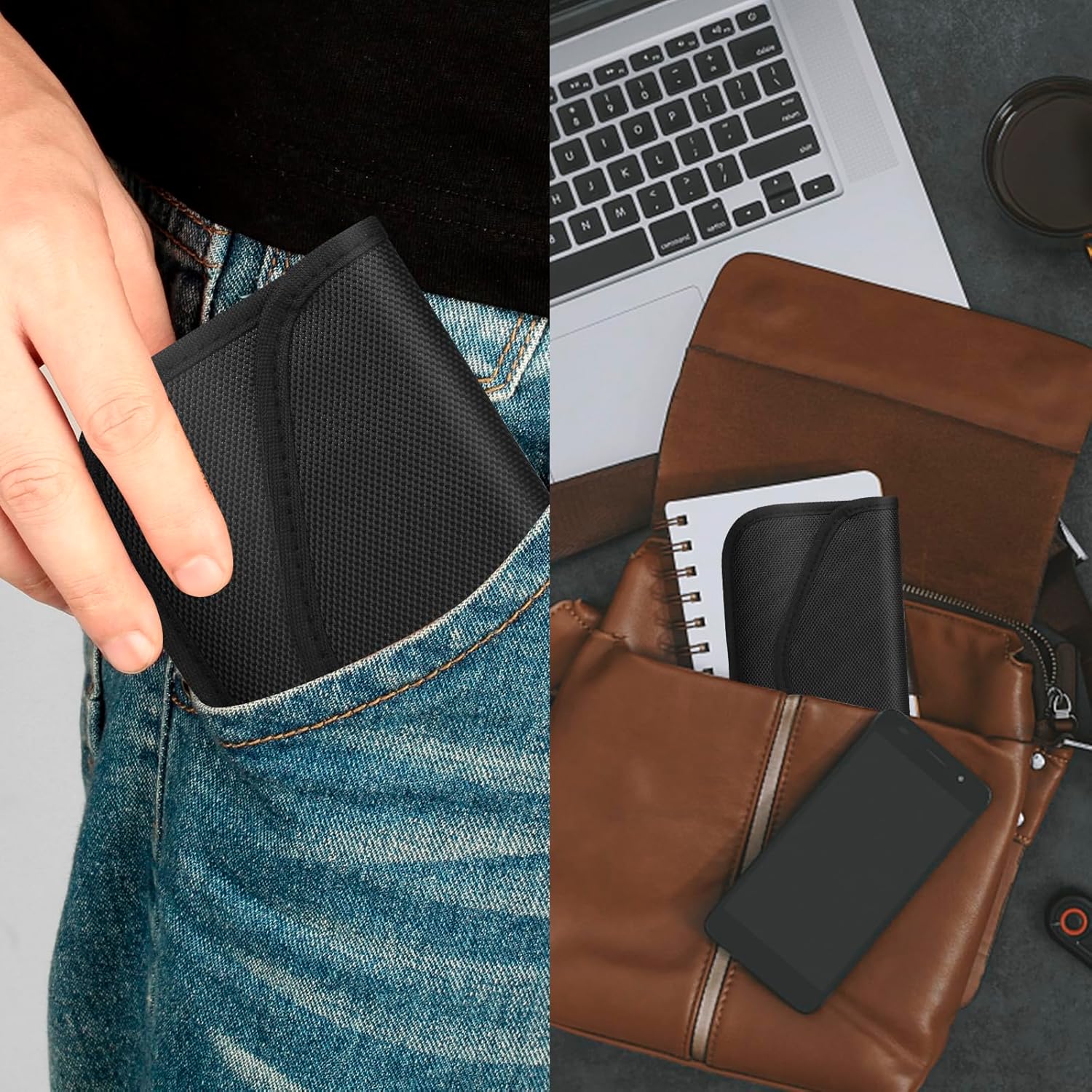 - 2 Pockets and Convenient Design: The inner pocket is lined with special signal blocking material to block all wireless signals and shield small electronic devices to prevent hacking and tracking. The outer pocket with normal lining can be used as a normal bag to store cash, door keys or other small items you may carry in a handbag or wallet