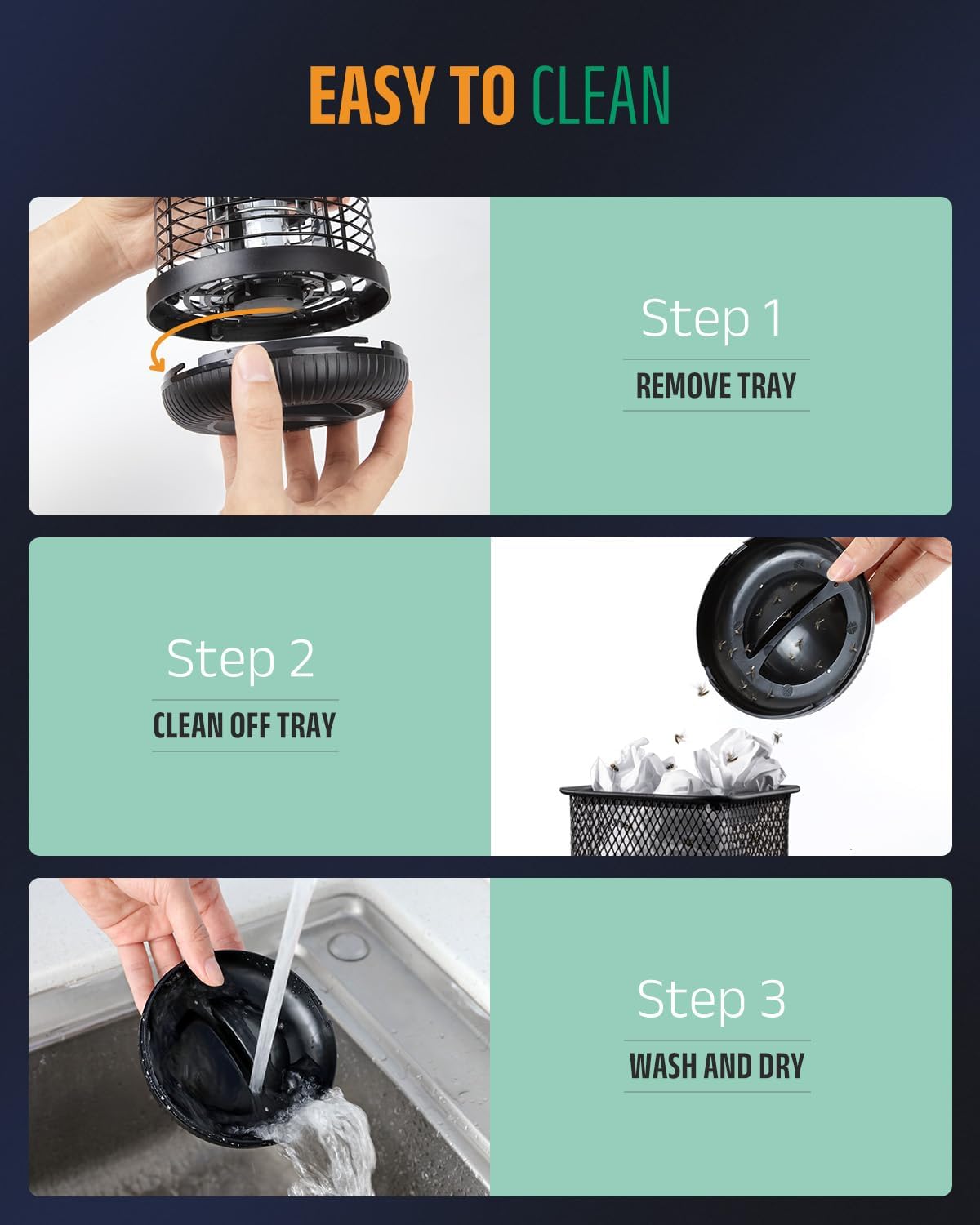 - User-friendly & Safe: This outdoor mosquito killer has a safely protective grid. It is equipped with a dead insect collection tray at the bottom and a cleaning brush for user convenience.